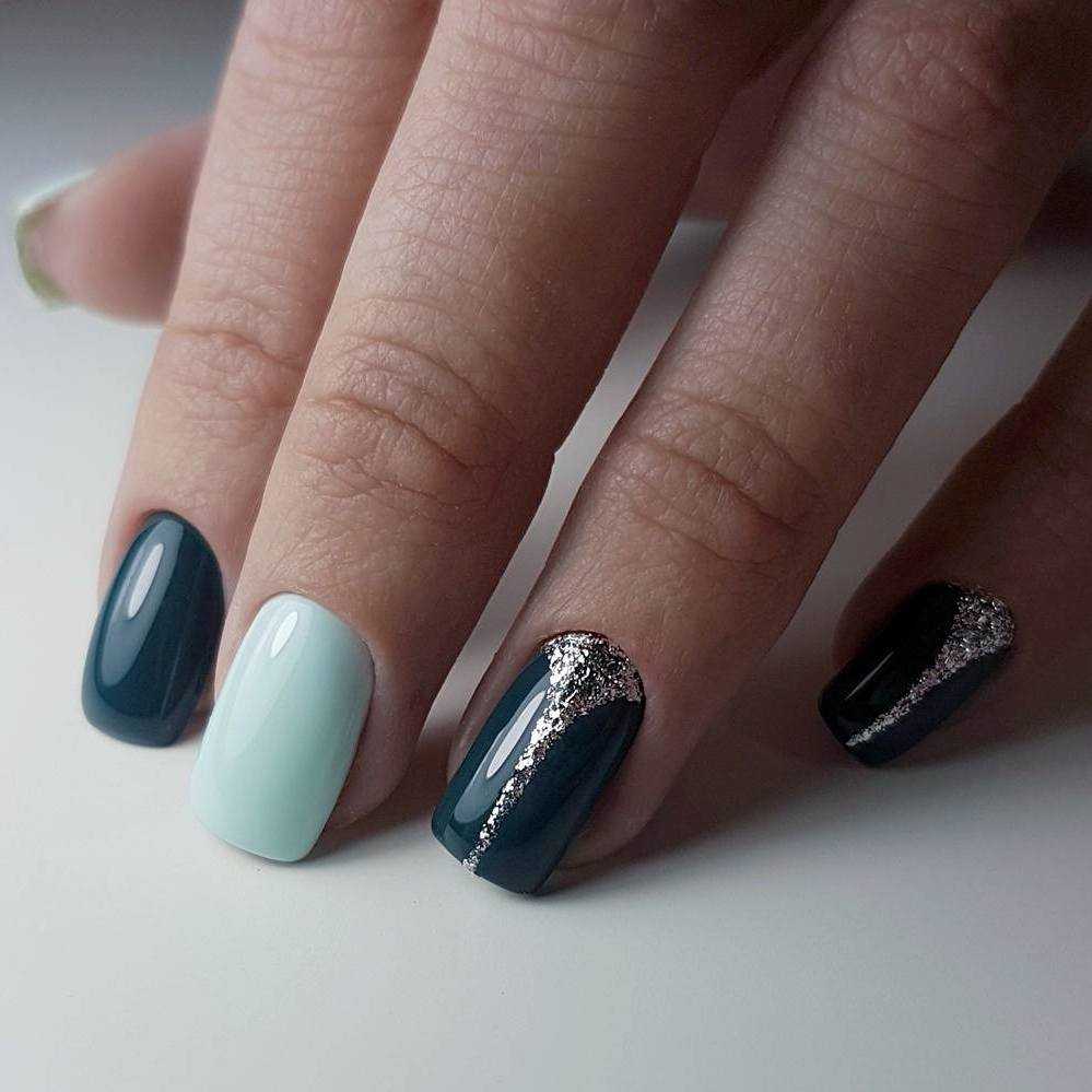 - Все оттенки синего + серебряный. Так Вы сможете создать идеальный рабочий маникюр: не броско, красиво, аккуратно.