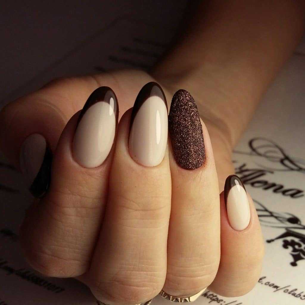 Светло- и темно-бежевые тона не имеют ограничений по длине и форме ногтей. Они выгодно подчеркивают достоинства, визуально корректируют недостатки и делают кисти рук изящнее.