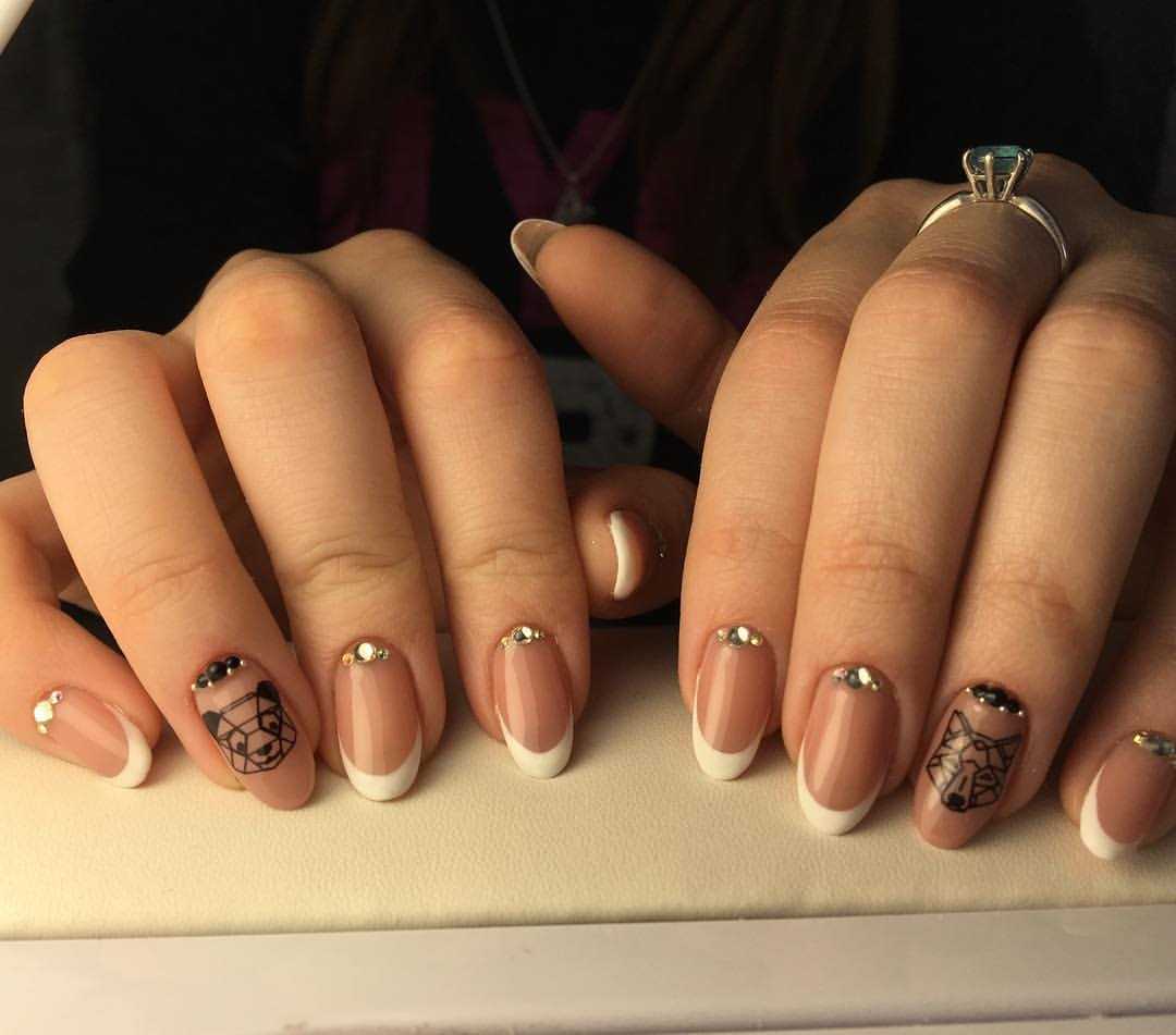 Бежевый френч можно выполнять на различную форму и длину ноготков. Главное правильно подойти к выбору оттенка лакового покрытия и дизайну самого маникюра. Стоит помнить, что излишний декор может испортить весь внешний вид ноготков.