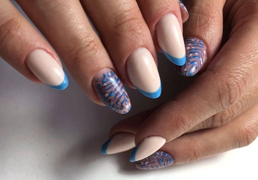 - часть дизайна — френч наносится на 1-2 ногтя руки;