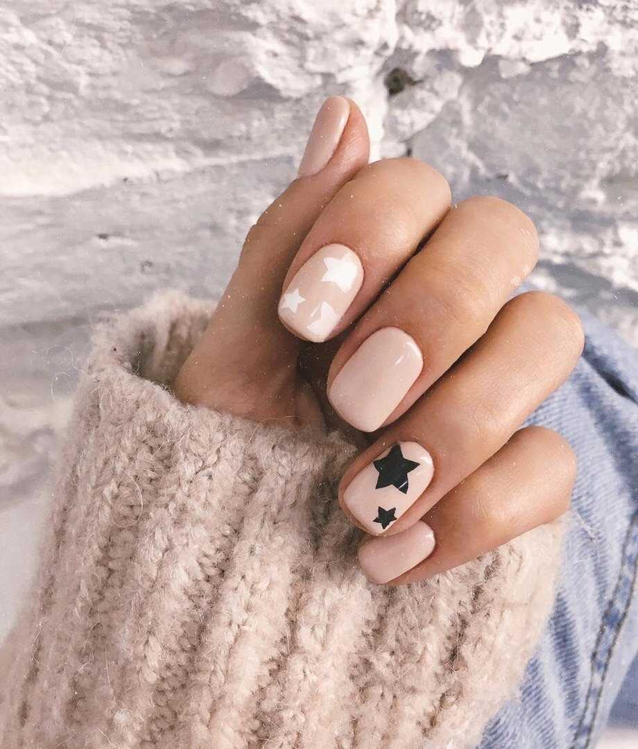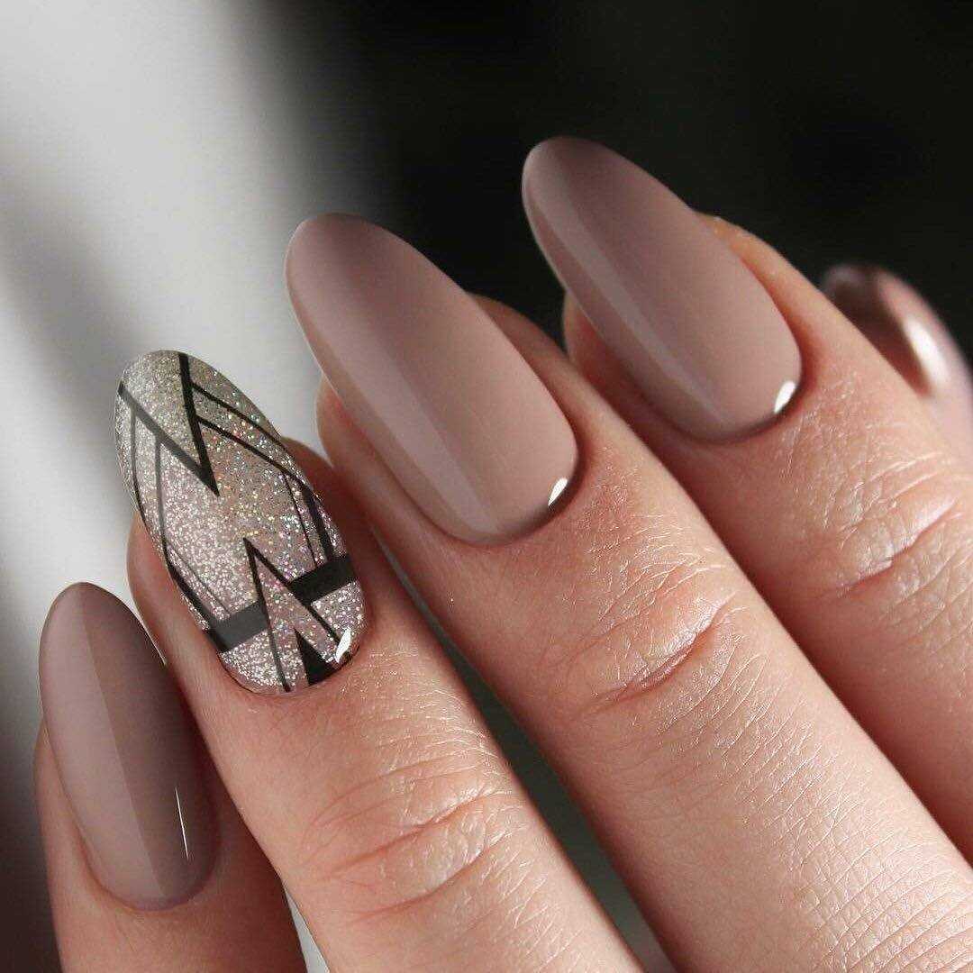 Один из самых удачных вариантов черно-бежевого маникюра — использование в дизайне геометрических фигур или их отдельных элементов. Примеры включают зигзаги, прямые линии, круги, овалы, квадраты, ромбы и треугольники. Вы можете использовать только один тип фигуры или объединить несколько разных фигур в одну композицию.