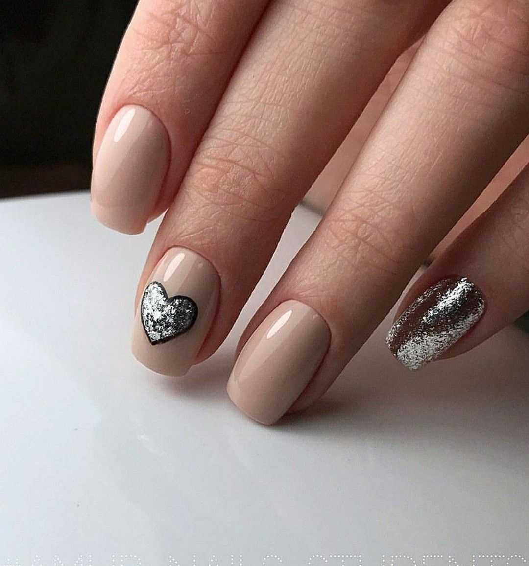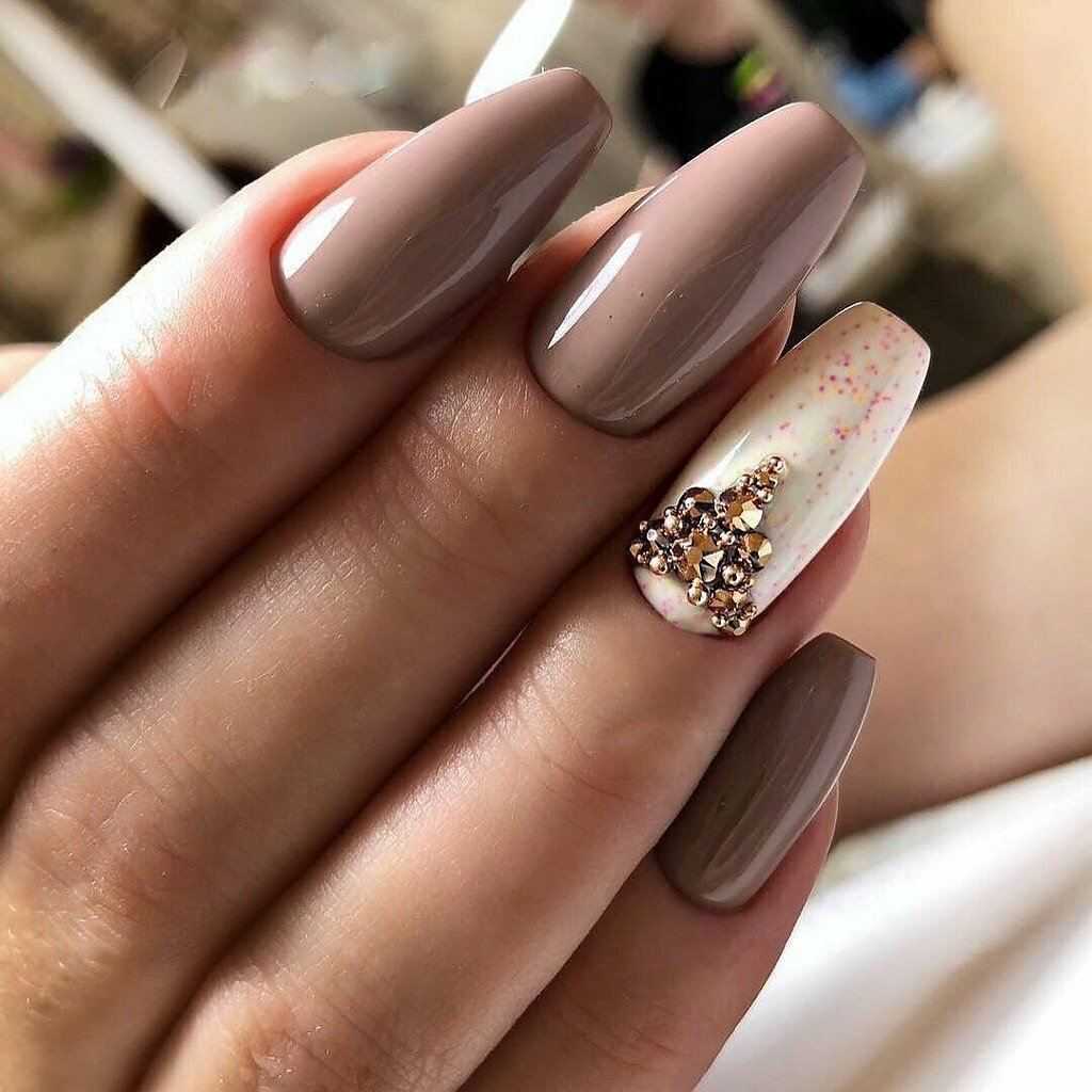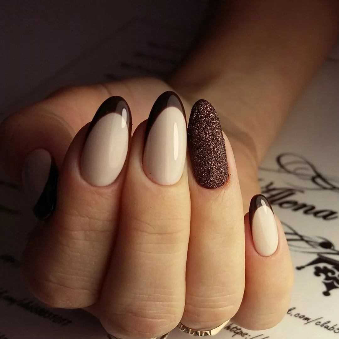 - актуален бежевый маникюр с черными блестками или эффектно декорированный стразами этого цвета.