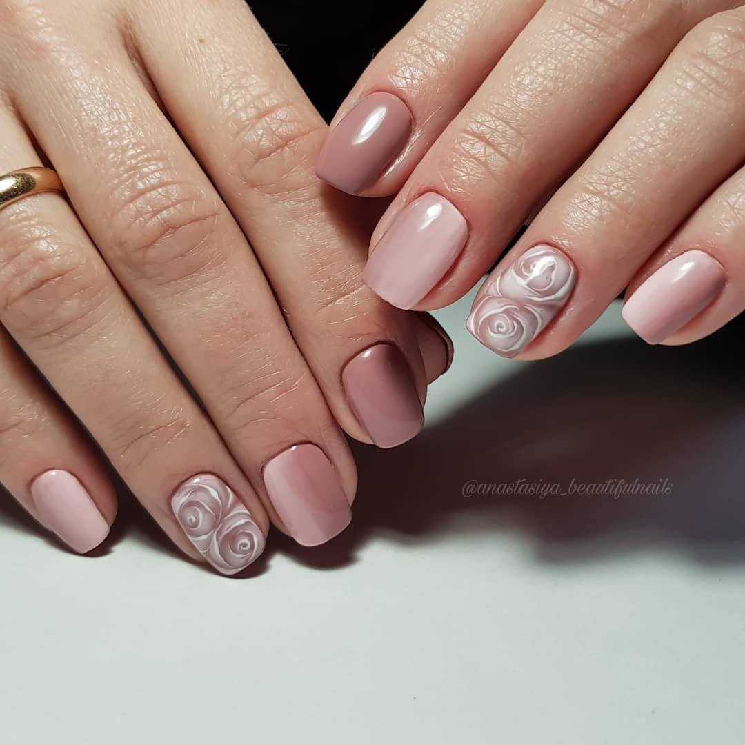 Какая бы длина ноготков ни была, бежевый маникюр украсит любой ноготок, только главное – выбрать удачный оттенок покрытия и дизайн.