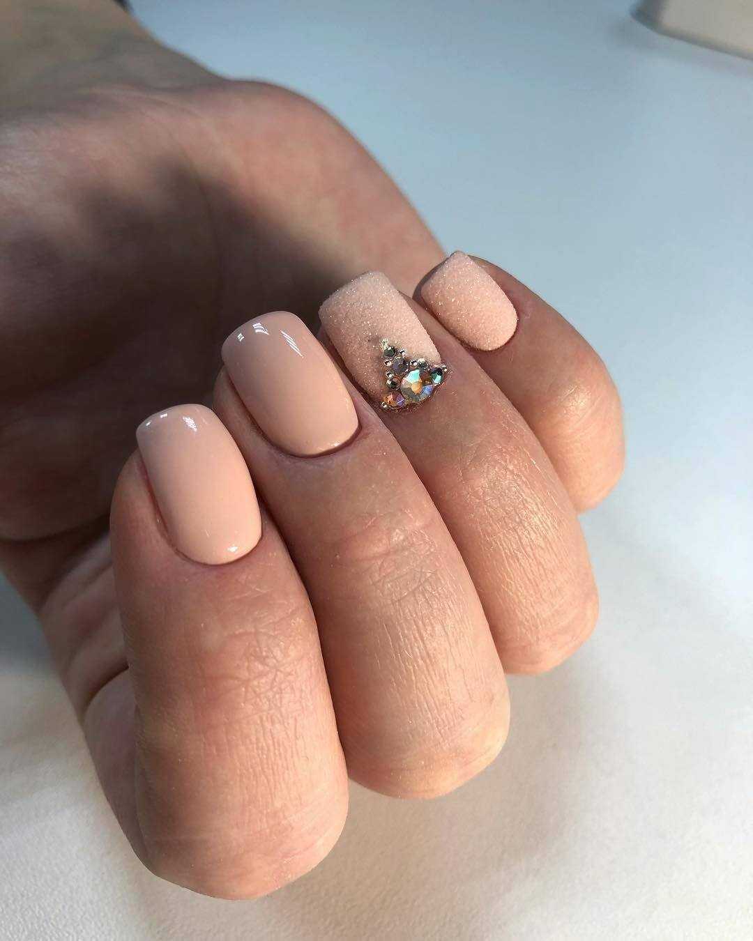Нюдовый является оттенком, который трудно заметить на ногтях. Несмотря на свою незаметность, он есть и именно он сделает короткие ногти аккуратными и естественными.