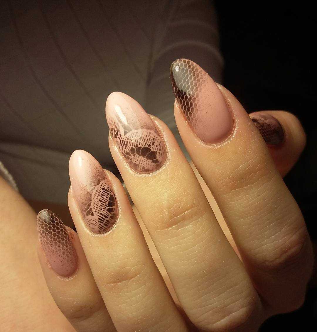 - маникюр с кружевом, абстрактными узорами, узорами мехенди