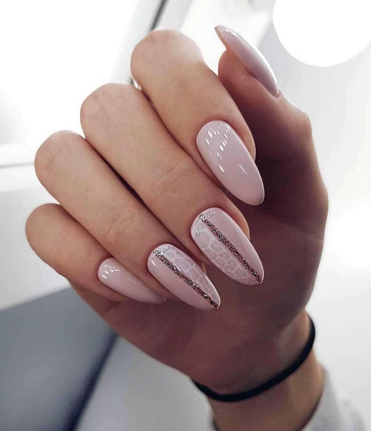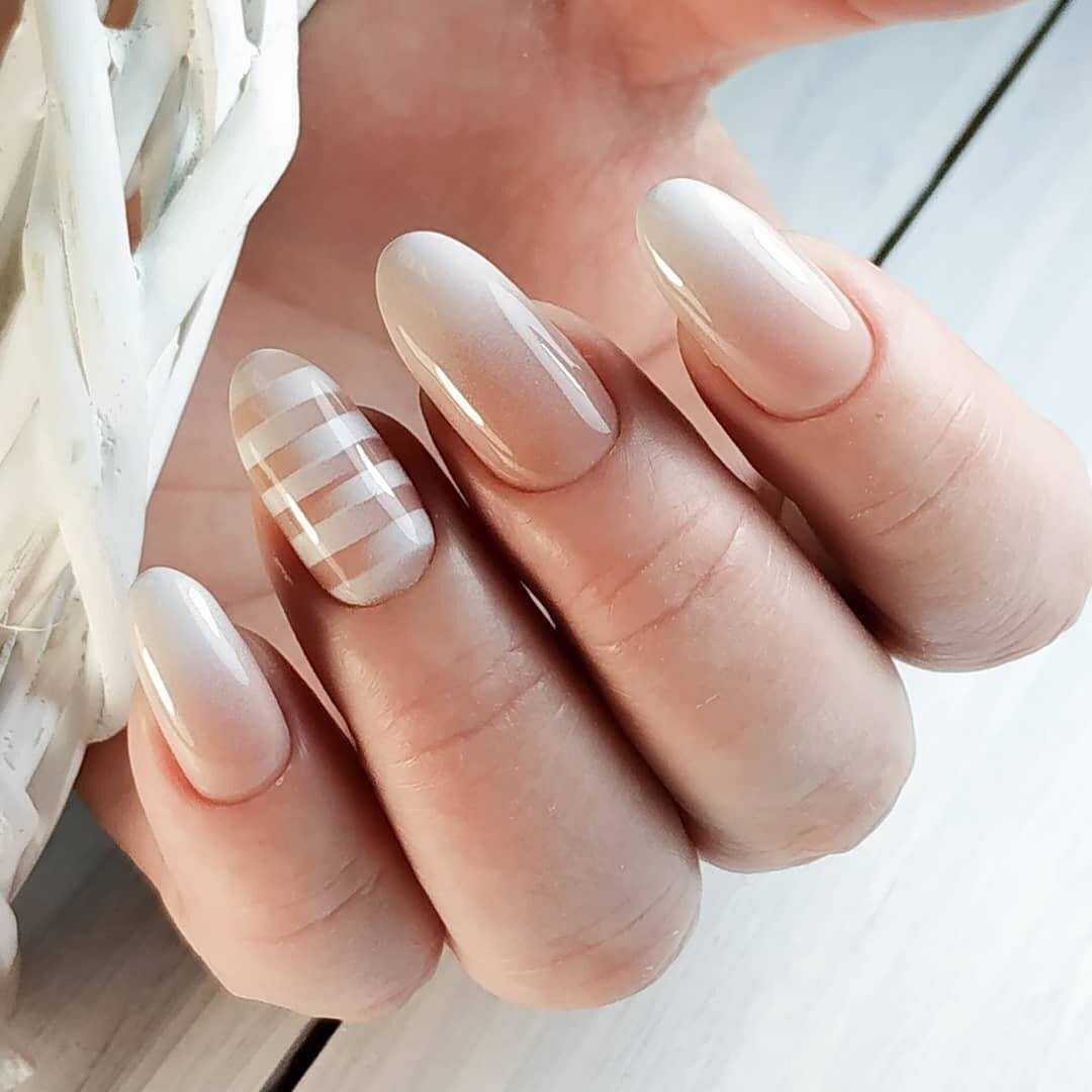 - любительницы элегантности смогут сделать лаконичный нейл-арт с тонкими темными полосками на нюдовом фоне;