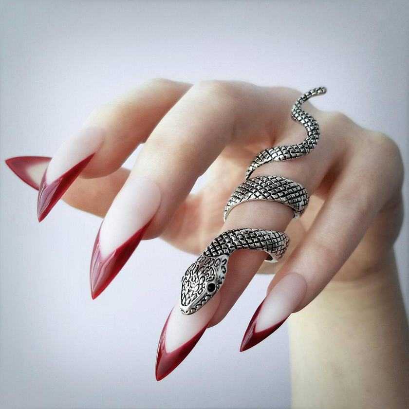 Красный френч на длинных острых ногтях