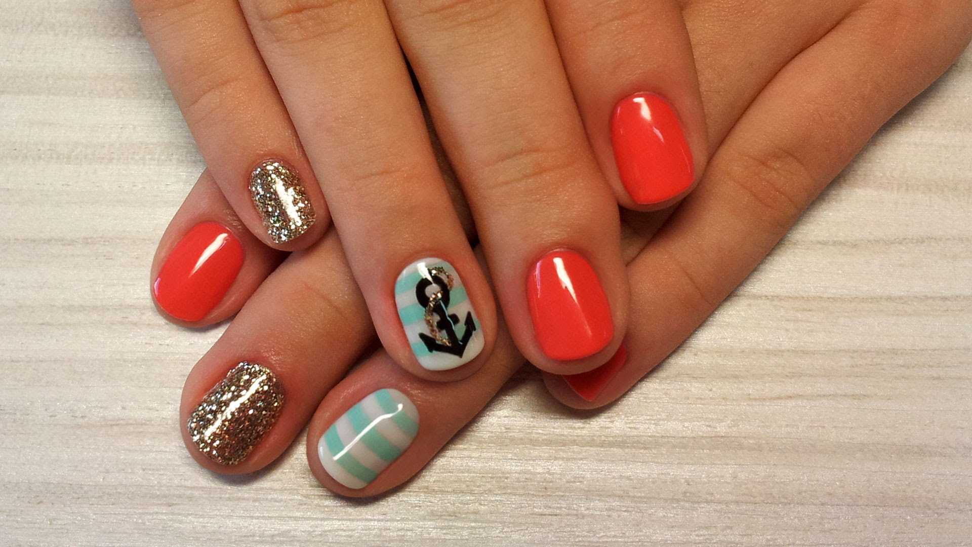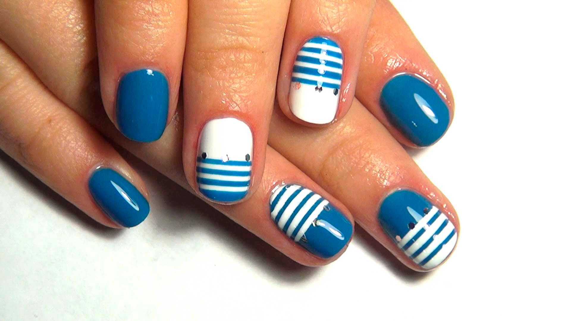 Если вы всей семьей планируете поездку на море, то это отличный повод для того, чтобы сделать тематический маникюр. Сочетание красного, синего, голубого и белого цветов – идеальный вариант для отдыха на пляже. А рисунок в виде штурвала или якоря дополнят дизайн маникюра и сделают его еще более красивым.