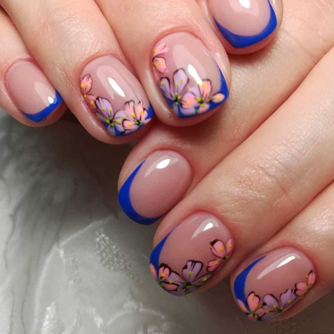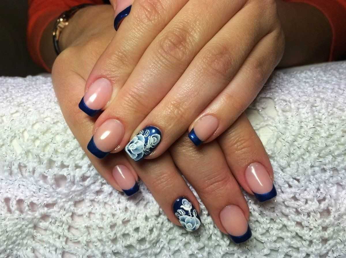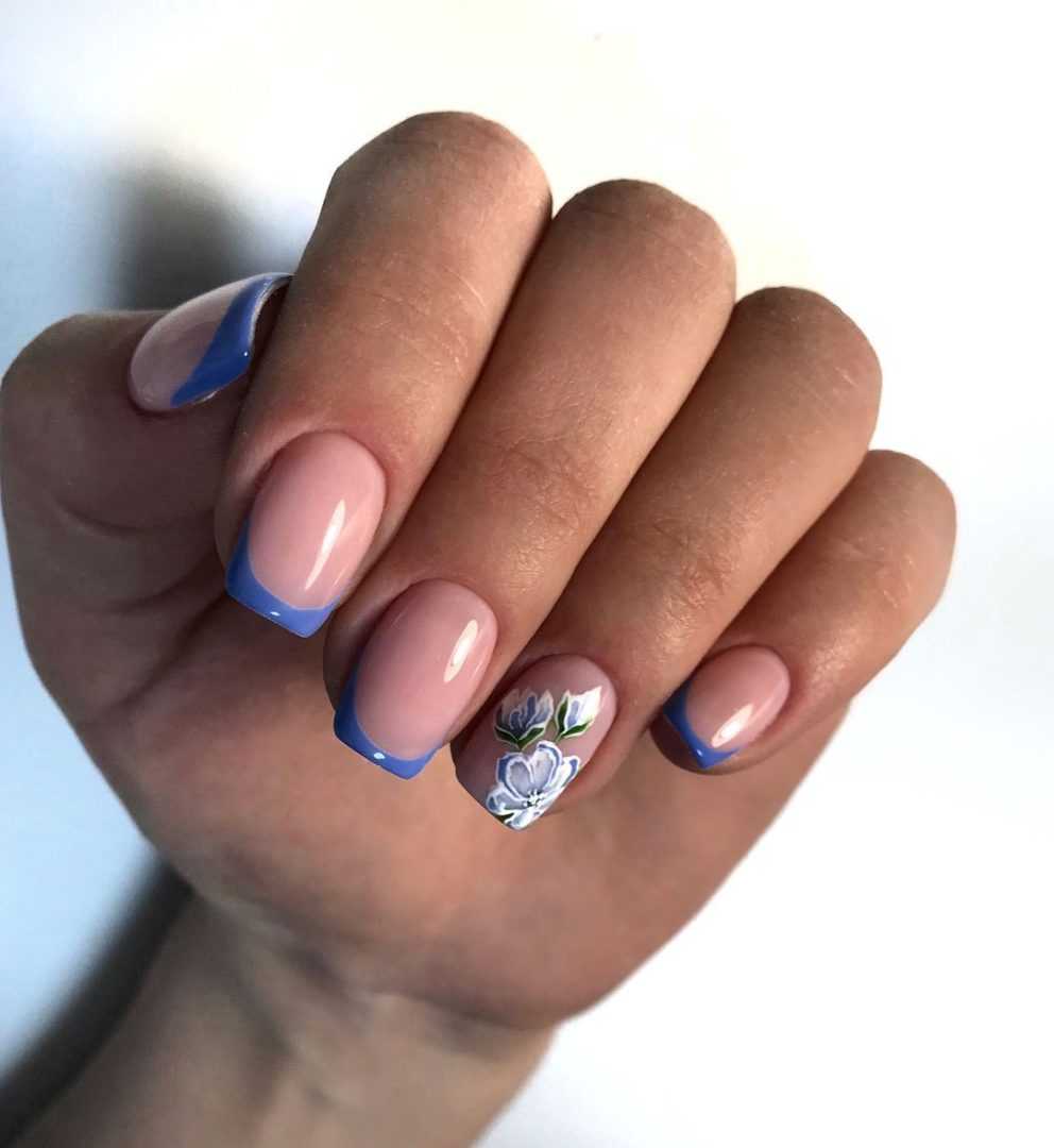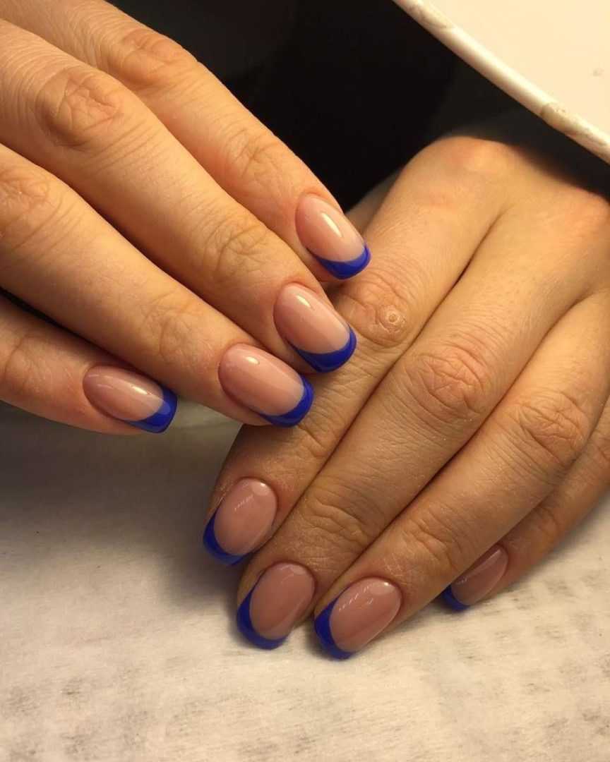 Синий френч на коротких ногтях: самые красивые идеи 2023-2024