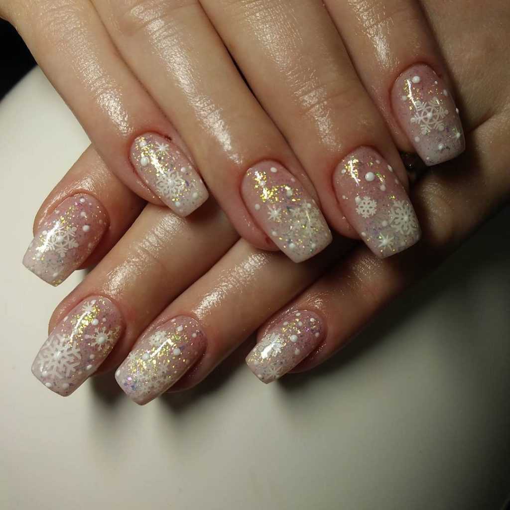 Зимний маникюр на квадратные ногти