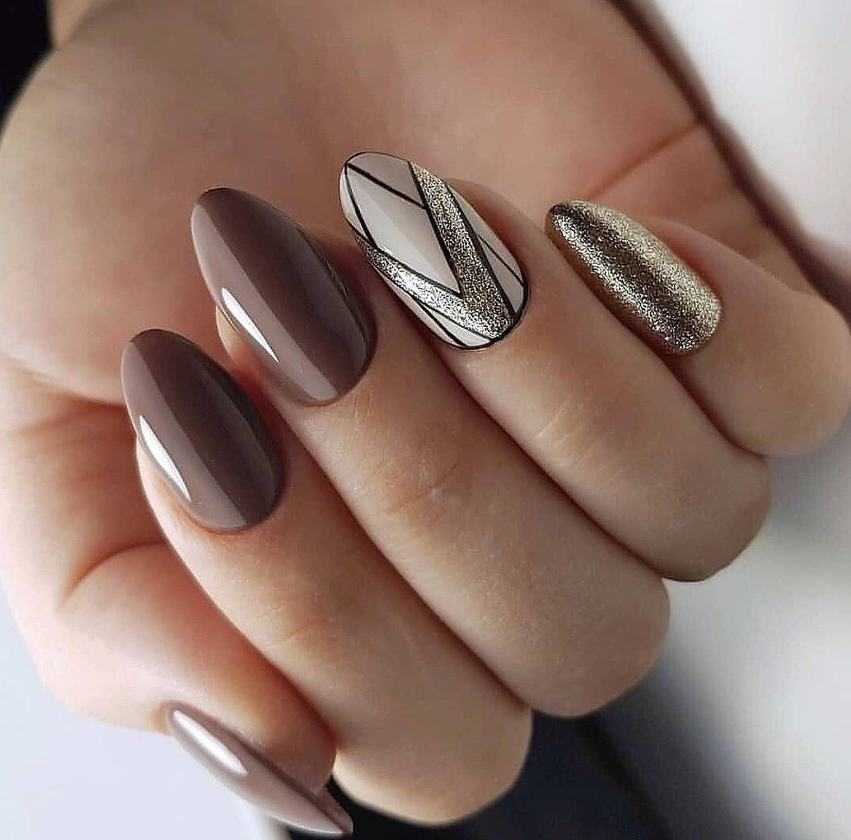 Коричневый маникюр с золотом