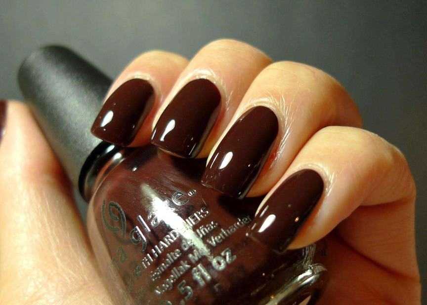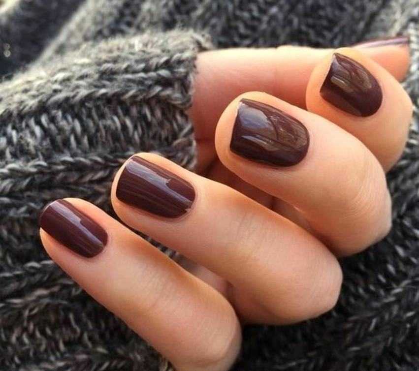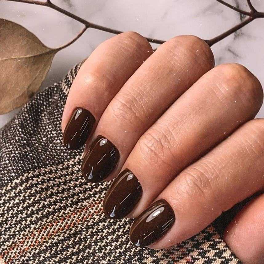 Плотный шоколадный с черным оттенком – подходящий вариант для различных ногтей. Кофейный колер великолепно гармонирует и с приглушенными, и с насыщенными тонами.