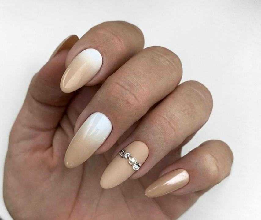 #1 Сочетание бежевого маникюра с белым