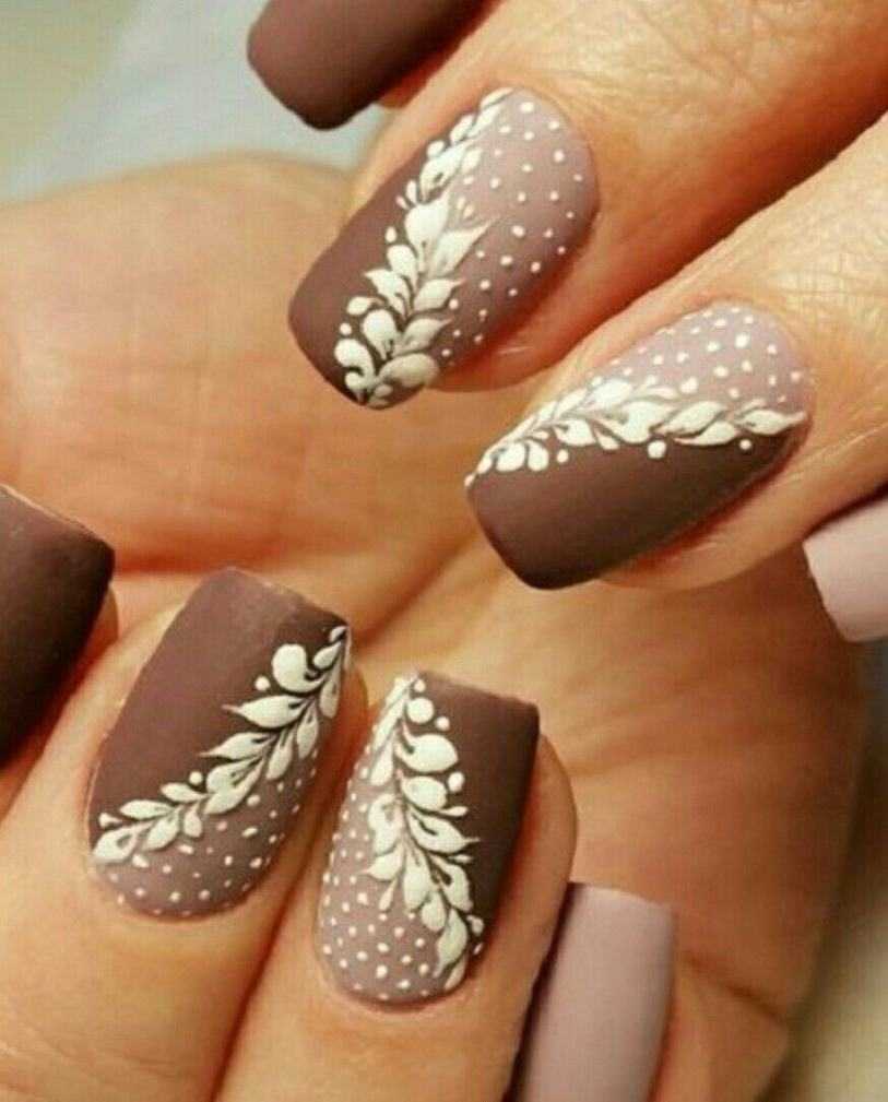 Коричневый с белым маникюр