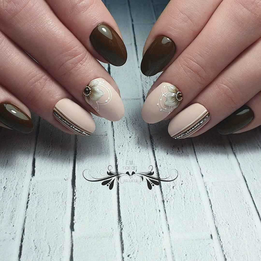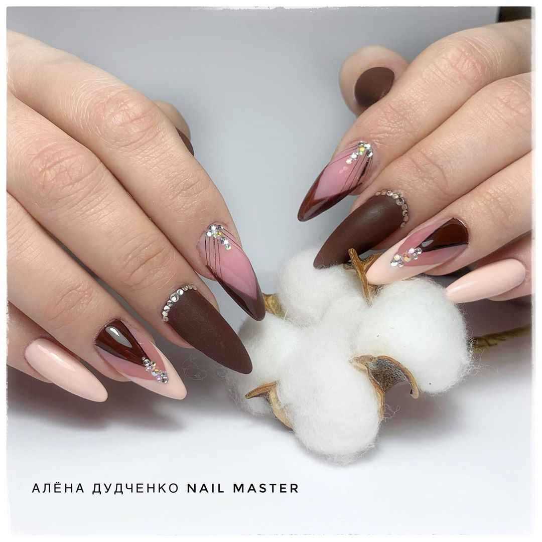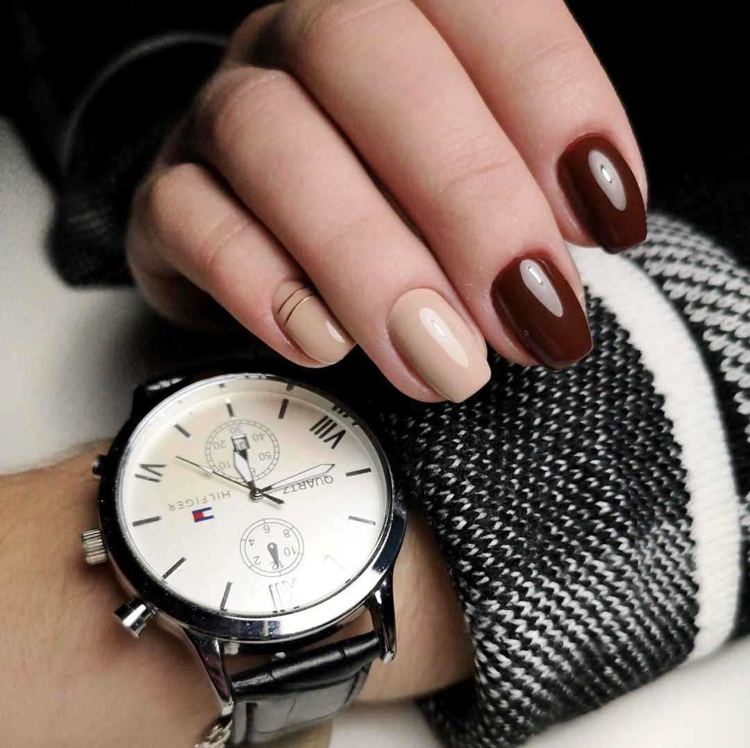 Актуальные сочетания цветов в коричневом маникюре