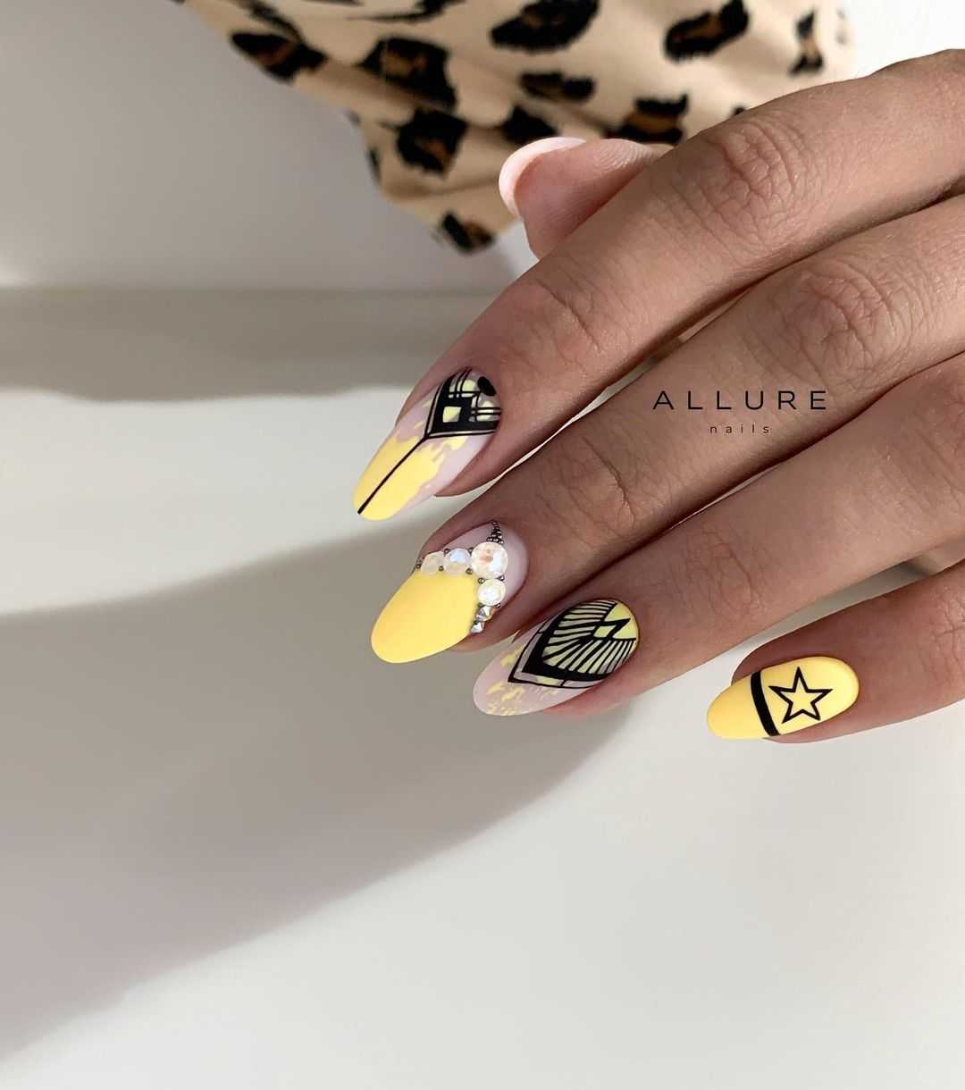 Такой маникюр всегда привлекает внимание, потому что он выглядит интересно и эффектно. Итак, если вы готовы продемонстрировать оригинальный дизайн и любите быть в центре внимания, ловите идеи на короткие ногти