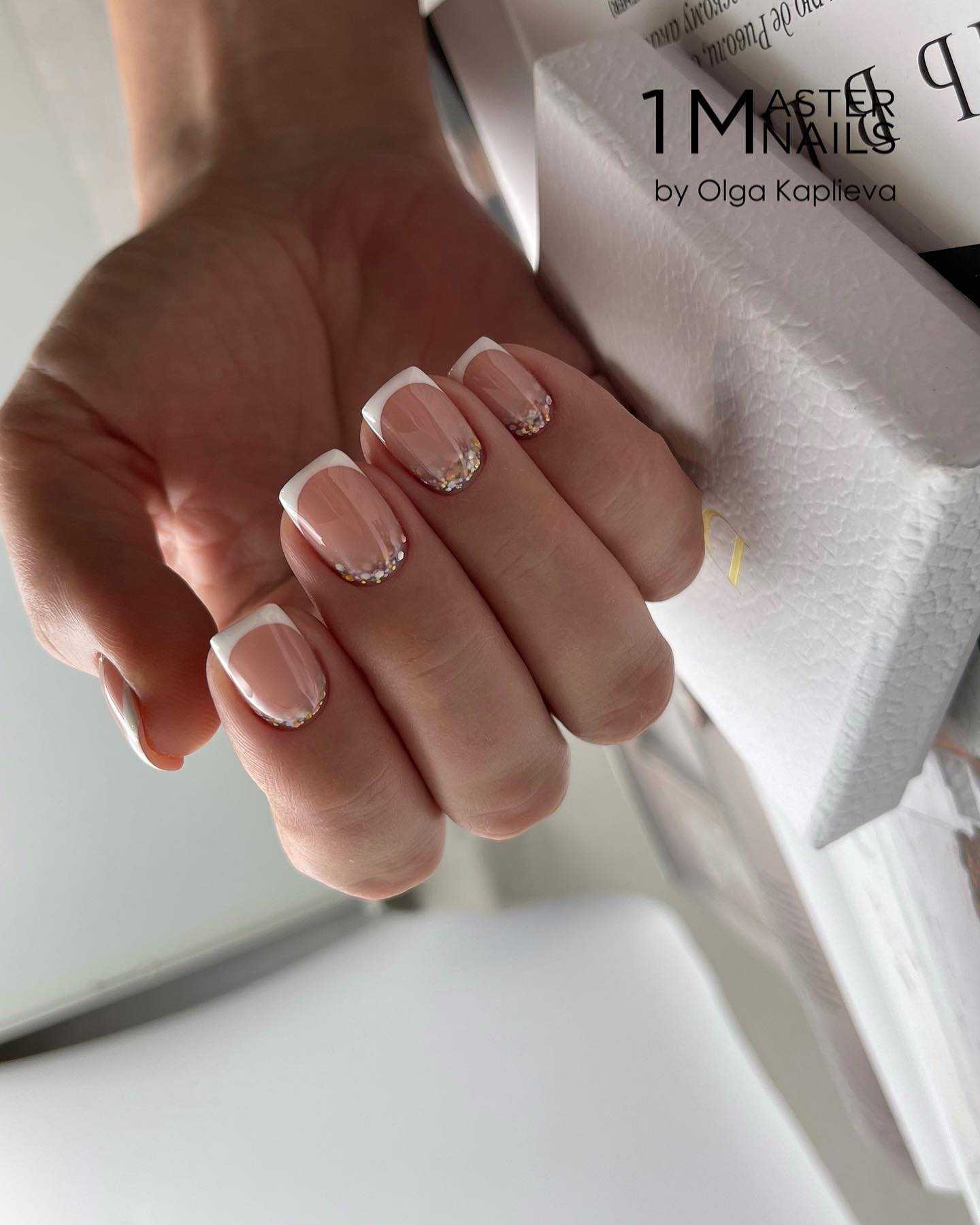 Стильный французский маникюр на коротких ногтях не нуждается в представлении. Это же классика нейл индустрии, которая не выходит из моды. К тому же классический френч предпочитают делать женщины, которые вынуждены придерживаться дресс-кода. Если же вы не стеснены рамками корпоративного стиля, выбирайте более яркие оттенки, например, кончик ногтя можно покрасить в неоновый цвет или для каждого пальчика подобрать разные тона.