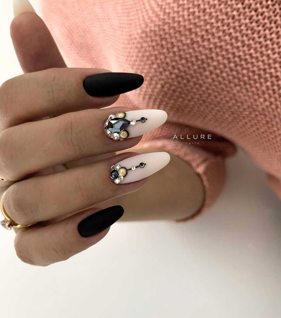 Современный и очень красивый матовый дизайн выполняют 2-я способами. Его можно создать путем нанесения на ноготки покрытий без блеска или с применением пудры либо флока. Матовый маникюр 2023 во многом напоминает декорирование микробисером.