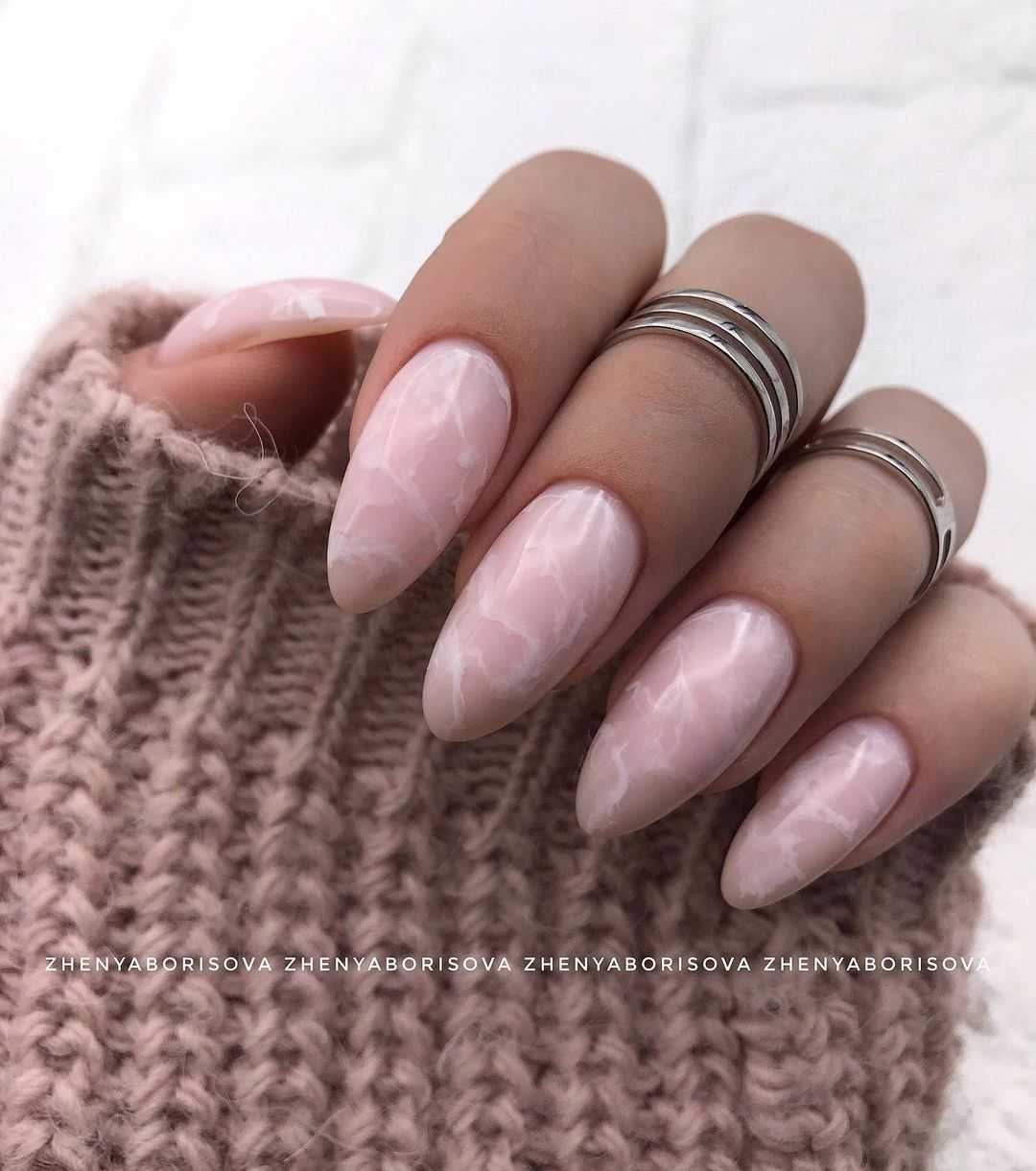 - Мраморные ноготочки. Такой маникюр на короткие ногти без сомнения выглядит стильно и ярко на коротких ногтях. А вот палитру подбирайте, исходя из времени года. Поэтому летом и весной отдавайте предпочтение светлым, пастельным оттенкам, а осенью и зимой – темным. Однако мрамор одинаково элегантно смотрится как на светлом, так и на темном фоне.