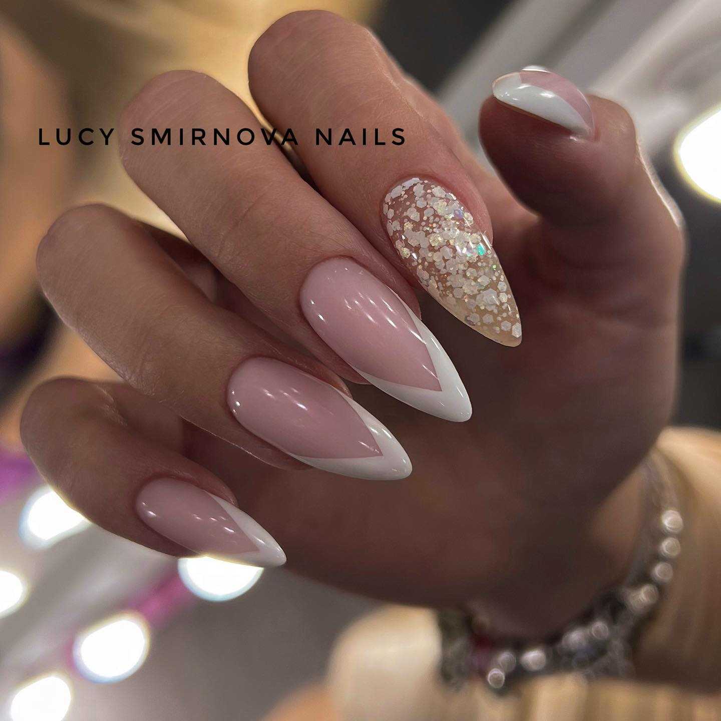 Тонкости создания френча мы здесь рассматривать не будем. Для этого можно воспользоваться видеоматериалами о наращивании ногтей и маникюре для начинающих, которые в изобилии присутствуют на нашем сайте. Для нашего урока нам нужен длинный френч, выполненный в классическом стиле, без ненужных излишеств.