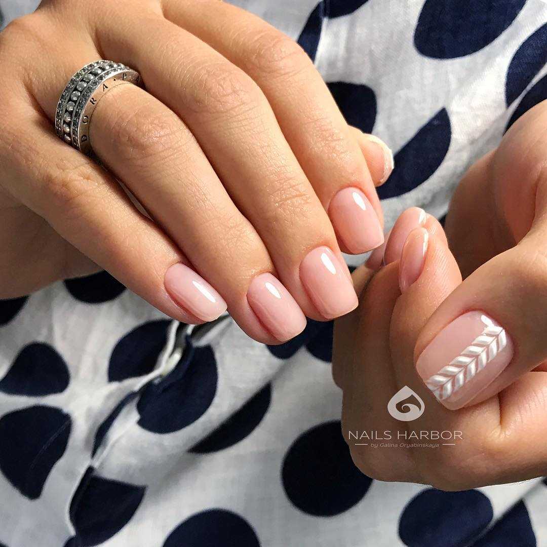 - Очень красиво и элегантно смотрится маникюр из одной точки. В этом случае лучше всего использовать нюдовые оттенки. Например, бежевая основа и темно-коричневая точка в области лунулы подчеркнет не только изысканный вкус своей обладательницы, но и сделает образ загадочным и роскошным.