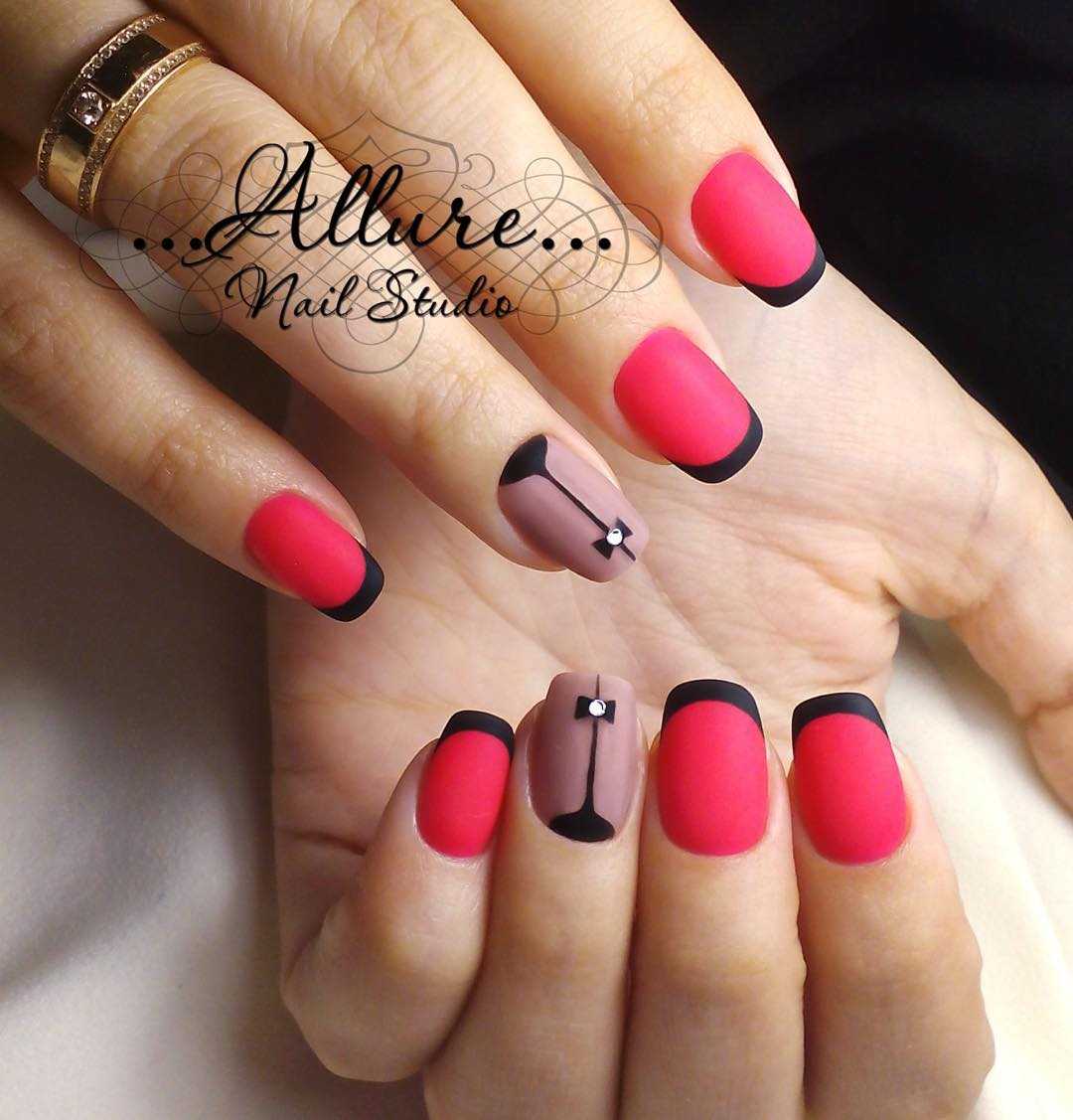 Для матового френча можно использовать любые оттенки красного: малиновый, алый, вишневый, бордо, розовый и другие. Матовый френч будет отлично смотреться со всеми этими тонами. В фото-подборке в конце обзора вы сможете найти десятки интересных идей с красным френчем.