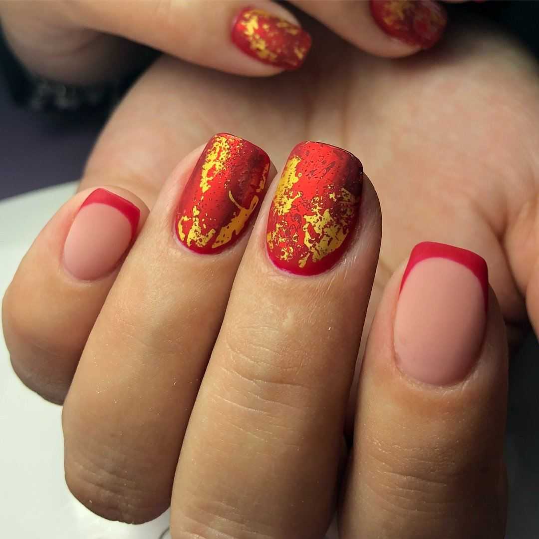 Как уже упоминалось выше, матовая текстура визуально успокаивает даже самые яркие оттенки. Красный – один из тех цветов, который эффектно выглядит на ногтях любой длины. С красным матовым гель-лаком можно поэкспериментировать, что кстати, не рекомендуется делать с черным цветом. Например: