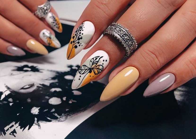 На пике популярности находится маникюр «разные ручки». Это фантастический дизайн, который смотрится очень стильно в сочетании с любой одеждой. Попробуйте покрыть ногти на одной руке желтым цветом, а на другой – оранжевым. Можно также добавить рисунки апельсинов или лимонов на одну из рук. Это отличный вариант для летнего маникюра.