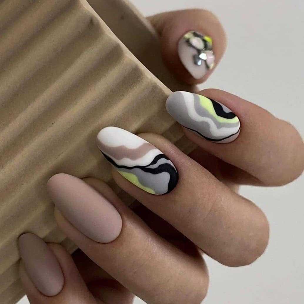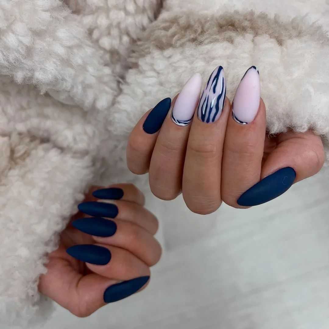 Безусловный лидер сезона – матовый топ. Этот дизайн всегда смотрится элегантно и дорого. Взрослые дамы и младшее поколение уже давно оценили все преимущества бархатистых оттенков. Он идеально смотрится на любой длине ногтей. Актуально будет добавить элементы декора, но их не должно быть много. Украшения в большом количестве на ногтях смотрятся вульгарно и несуразно.