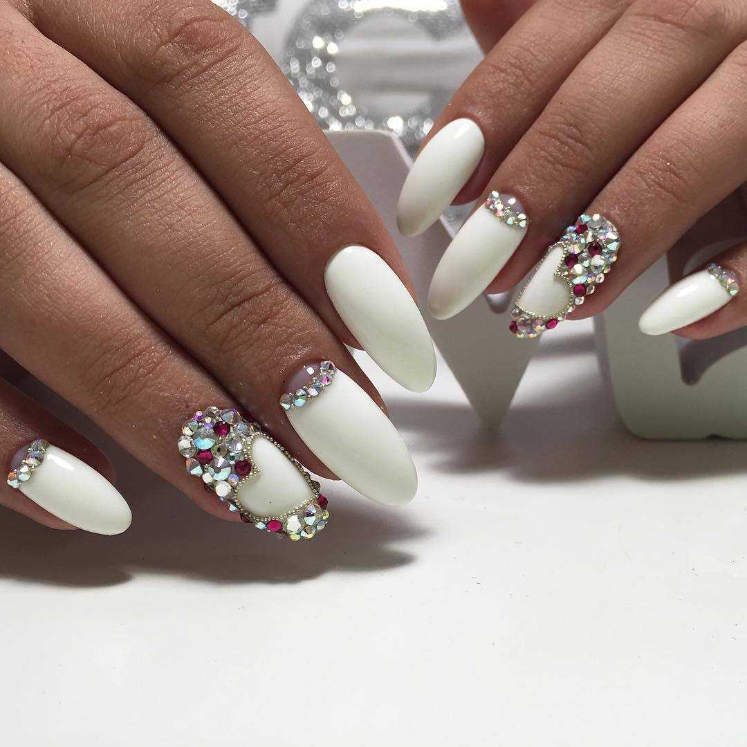 Для сдержанного образа в одежде подойдет маникюр, украшенный стразами и рисунками. Смотрите самую большую подборку из фото новинок нежного маникюра для выпускниц