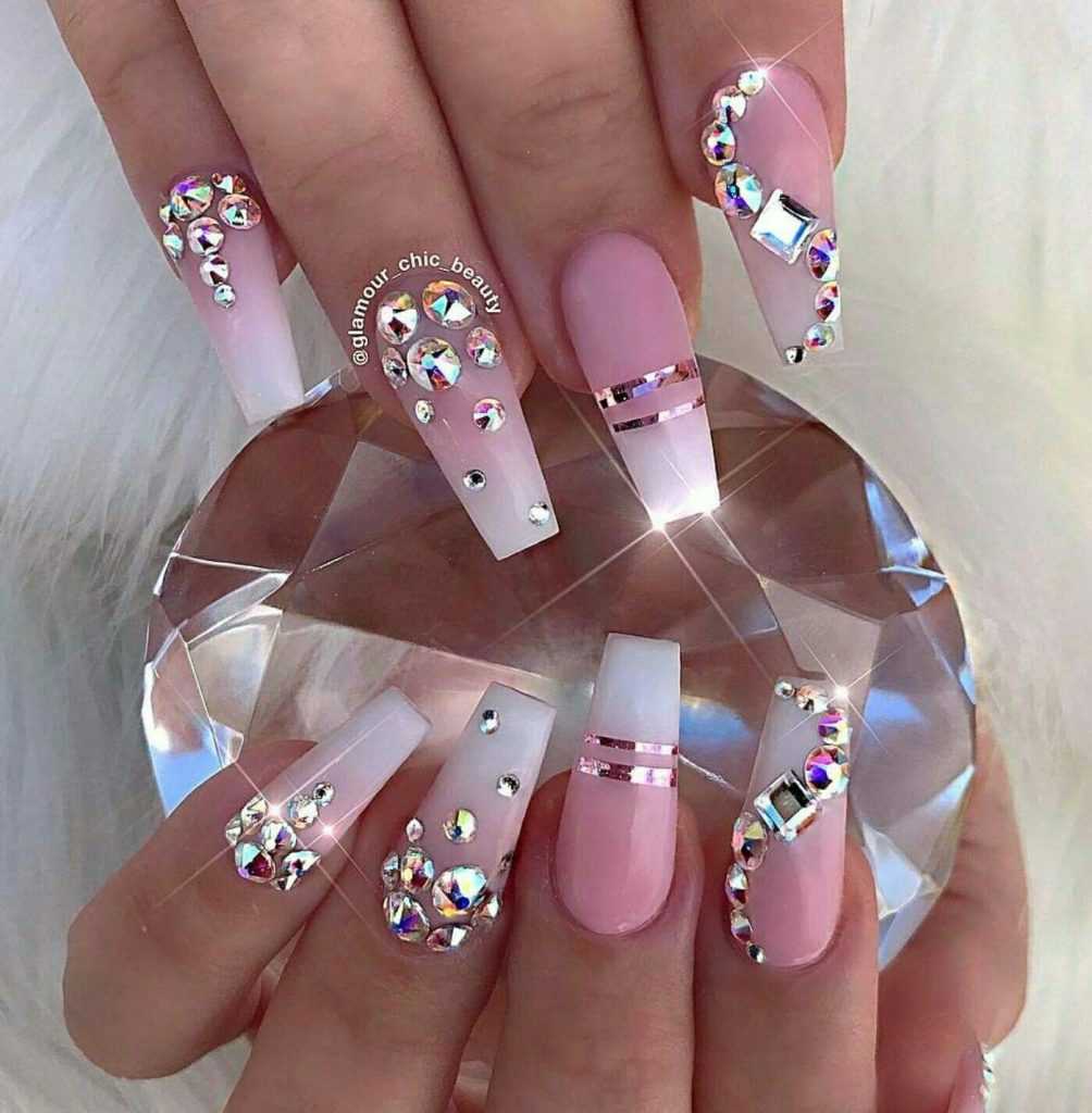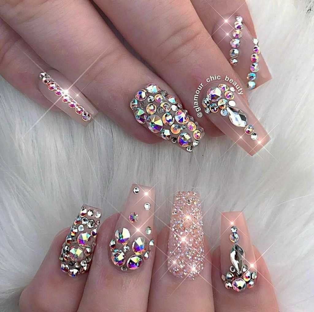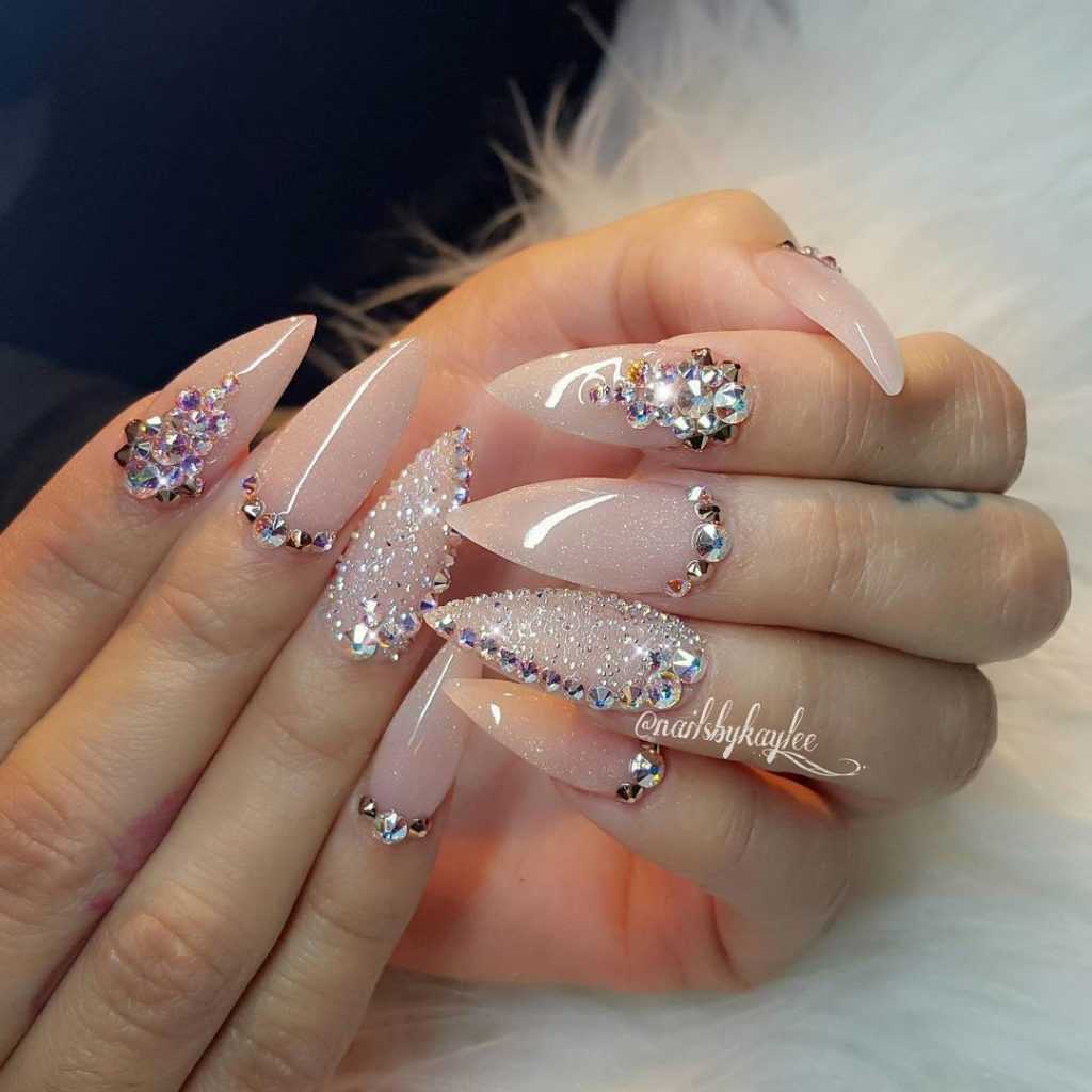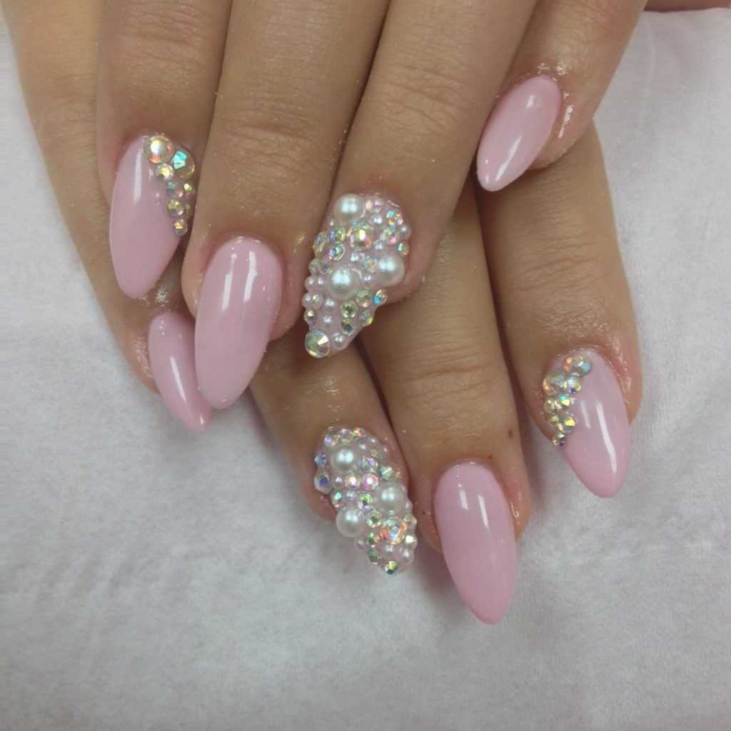 Ещё одной отличительной особенностью корейских модниц является любовь к большим и сверкающим камушкам. На ногтях они могут расположить по кристаллику самой разнообразной формы и довольно объёмным в пропорциях, а размером и вовсе величиной с ноготь.