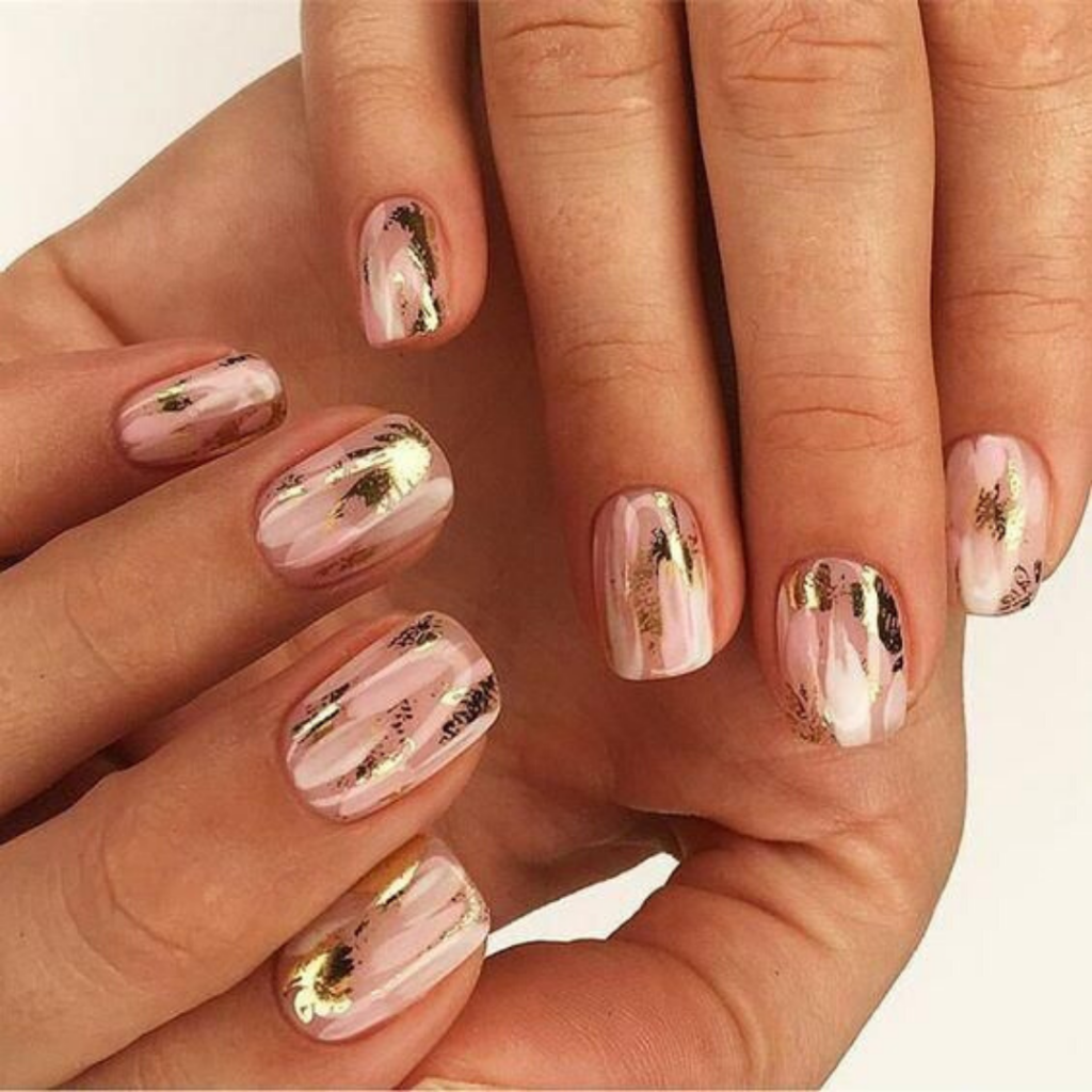 Для более раскрепощенного и рокового образа можно использовать сочетание золота с темно-бордовой или сливовой основой. А вот что касается хитового в этом сезоне мраморного маникюра, явным фаворитом станет имитация натурального камня, которая будет выглядеть максимально реалистично.