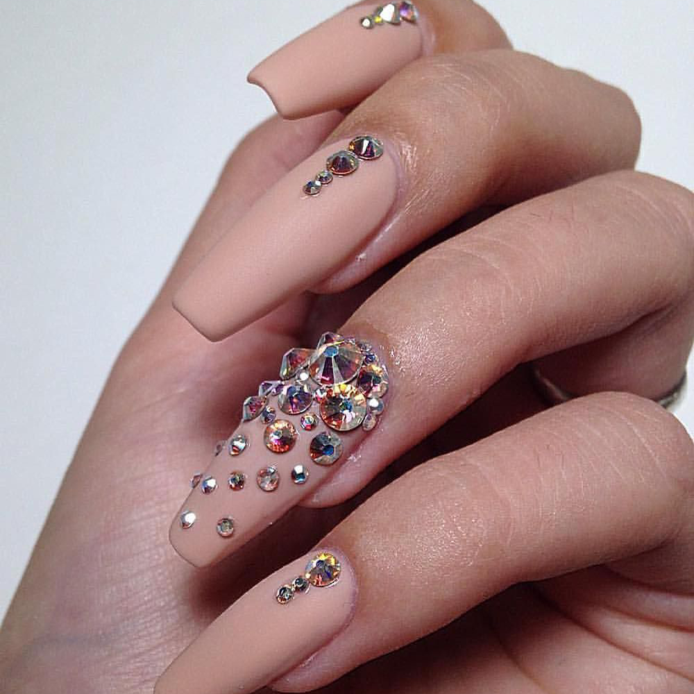 Ее можно удлинить, сделать треугольной или прямоугольной, либо вообще инкрустировать камнями. Геометрические узоры на длинных ногтях будут пользоваться спросом, однако техника их выполнения несколько видоизмениться.