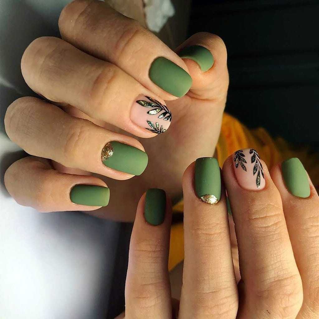 Оливковый нейл-арт считается ещё и носибельным, поскольку он является отличным дополнением не только к повседневным образам, но и к вечерним.
