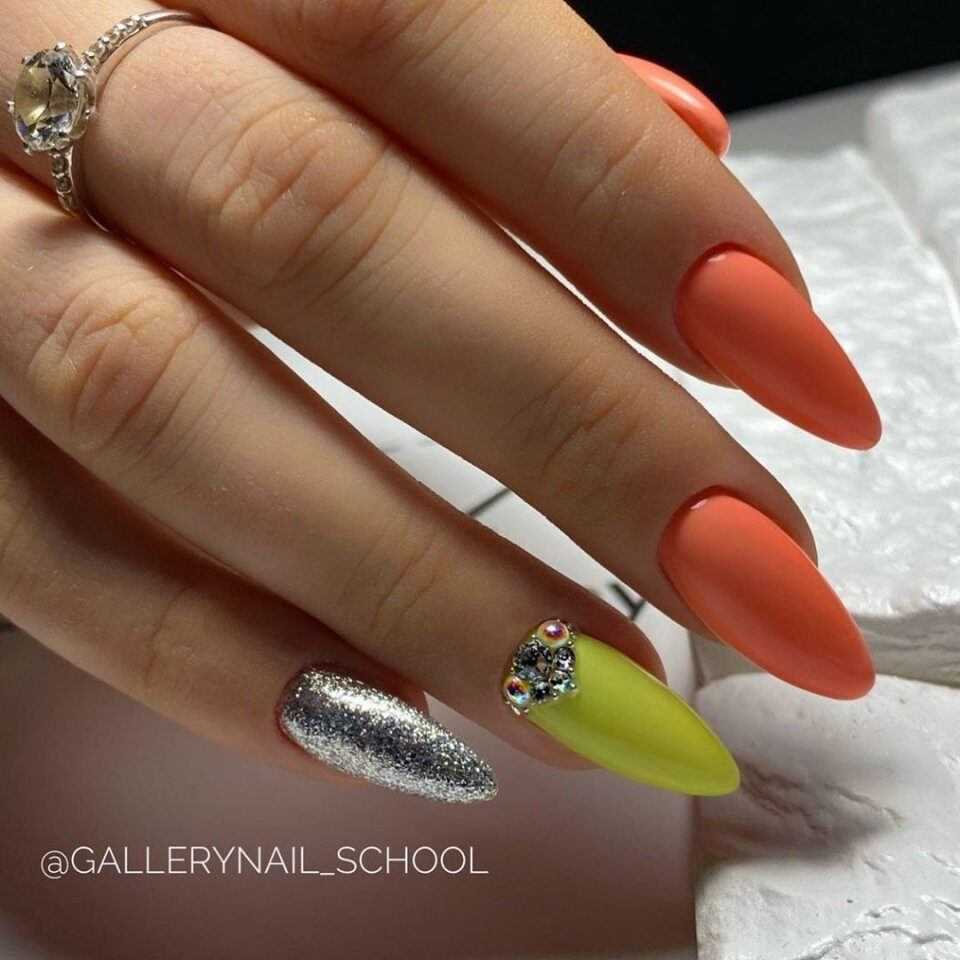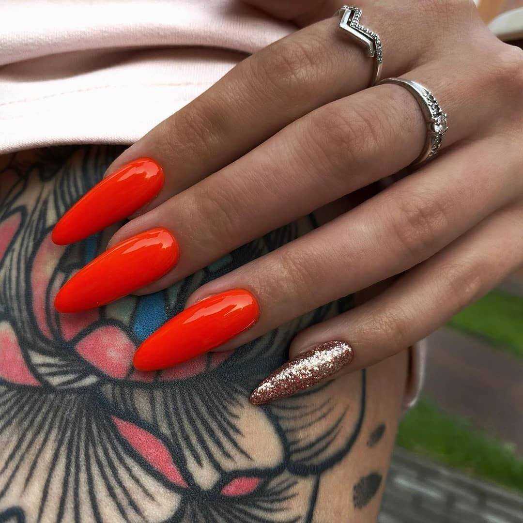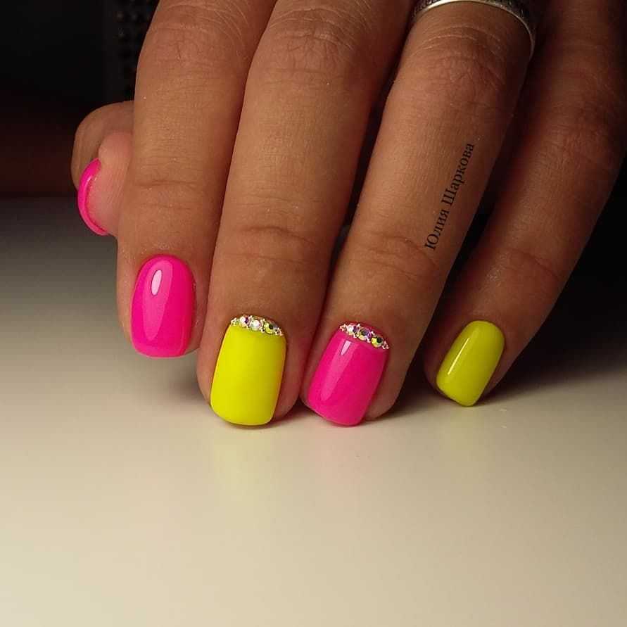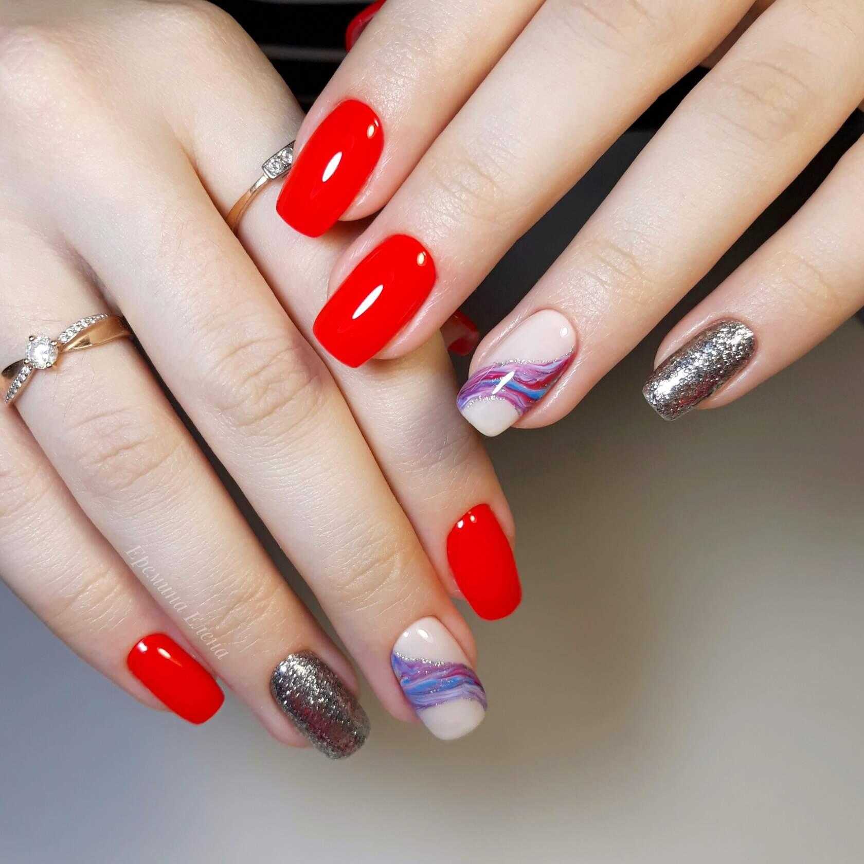 Оформление маникюра с использованием ярких лаков – это бесчисленное количество не только однотонных вариаций, но и оригинальных сочетаний оттенков. Яркий нейл-арт всегда смотрится на ноготках очень привлекательно, а в компании с разнообразными блёстками позволяют экспериментировать и создавать потрясающий дизайн.