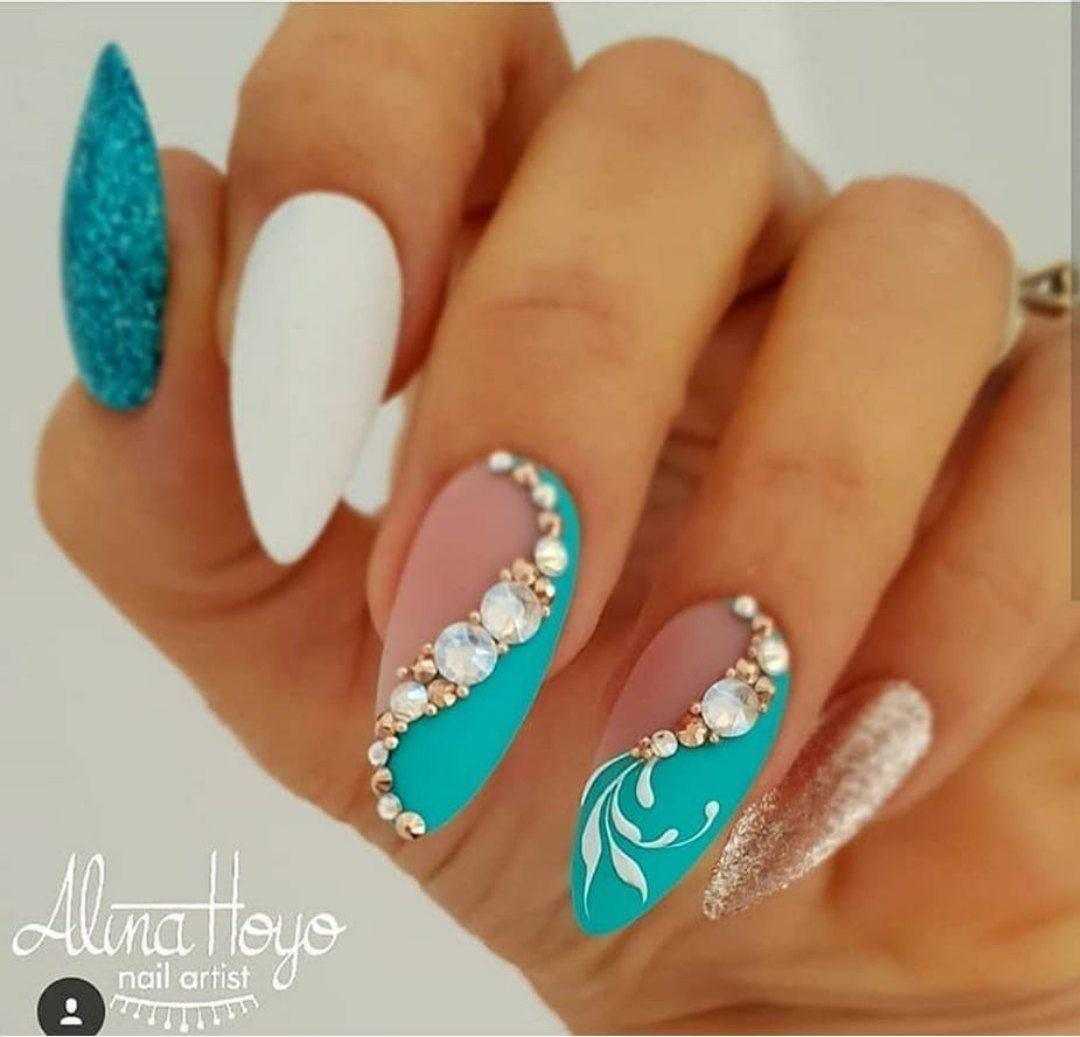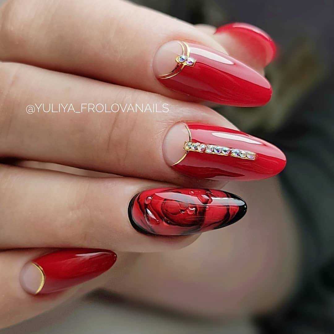 Камни могут быть разных цветов и размеров, а также различной формы, что позволяет создавать довольно необычные и оригинальные узоры. Камни в маникюре создают акцент, поэтому нет необходимости наносить их на каждый ноготь.