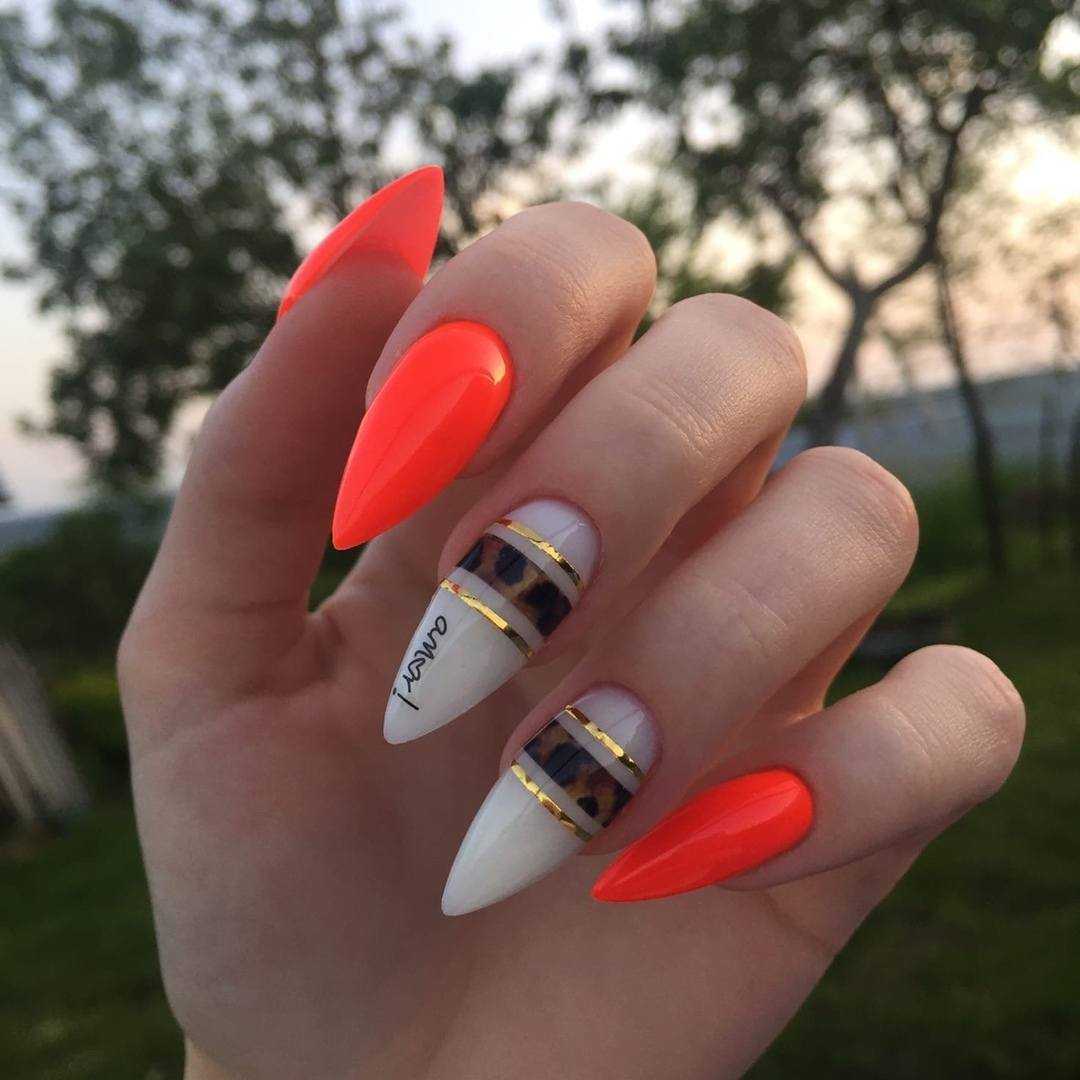 Для дизайна используется комбинация материалов и техник. На одной ногтевой пластине могут уместиться блестки, фольга, аппликация, стразы. Оригинально и модно смотрится леопардовый принт в сочетании с дерзкой черной паутинкой. Также можно добавить прямые линии.