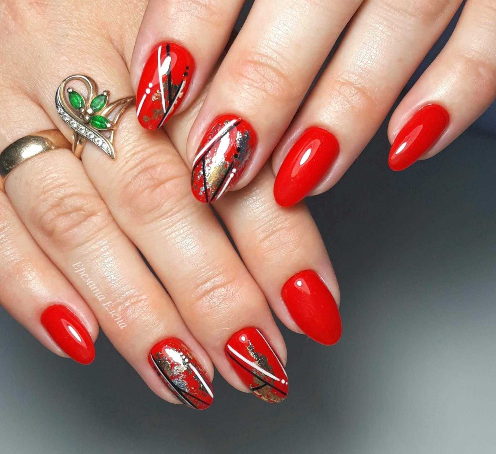 Стильно, дерзко и со вкусом — только так можно описать такой маникюр. Глянец отлично смотрится под прямыми линиями тонкой паутинки. На фото ногти будут переливаться под вспышкой, а паутина красиво оттенит тот самый глянец.