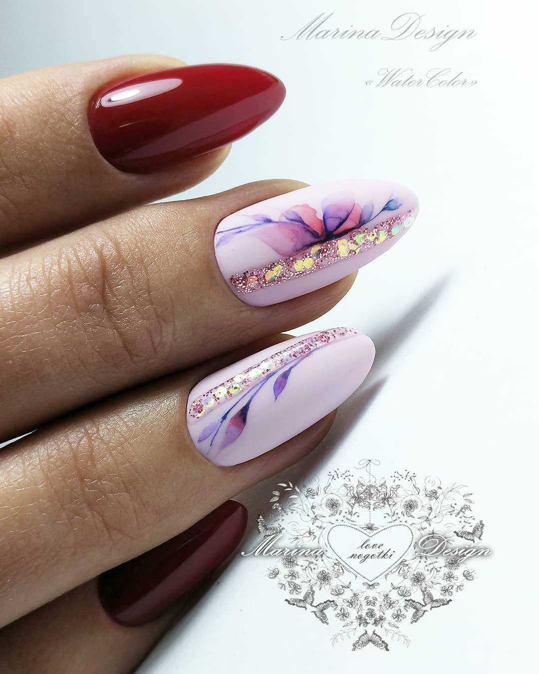 При этом можно покрыть ими как весь ноготь, так и его часть, либо использовать для французского маникюра. Но тогда пайетки должны быть совсем небольшими. Если говорить о цветовых предпочтениях в сезоне, то это пастельные оттенки или глубокий и сочный бордовый, винный, классический красный, черный и белый. Но в тренде и яркие летние оттенки.