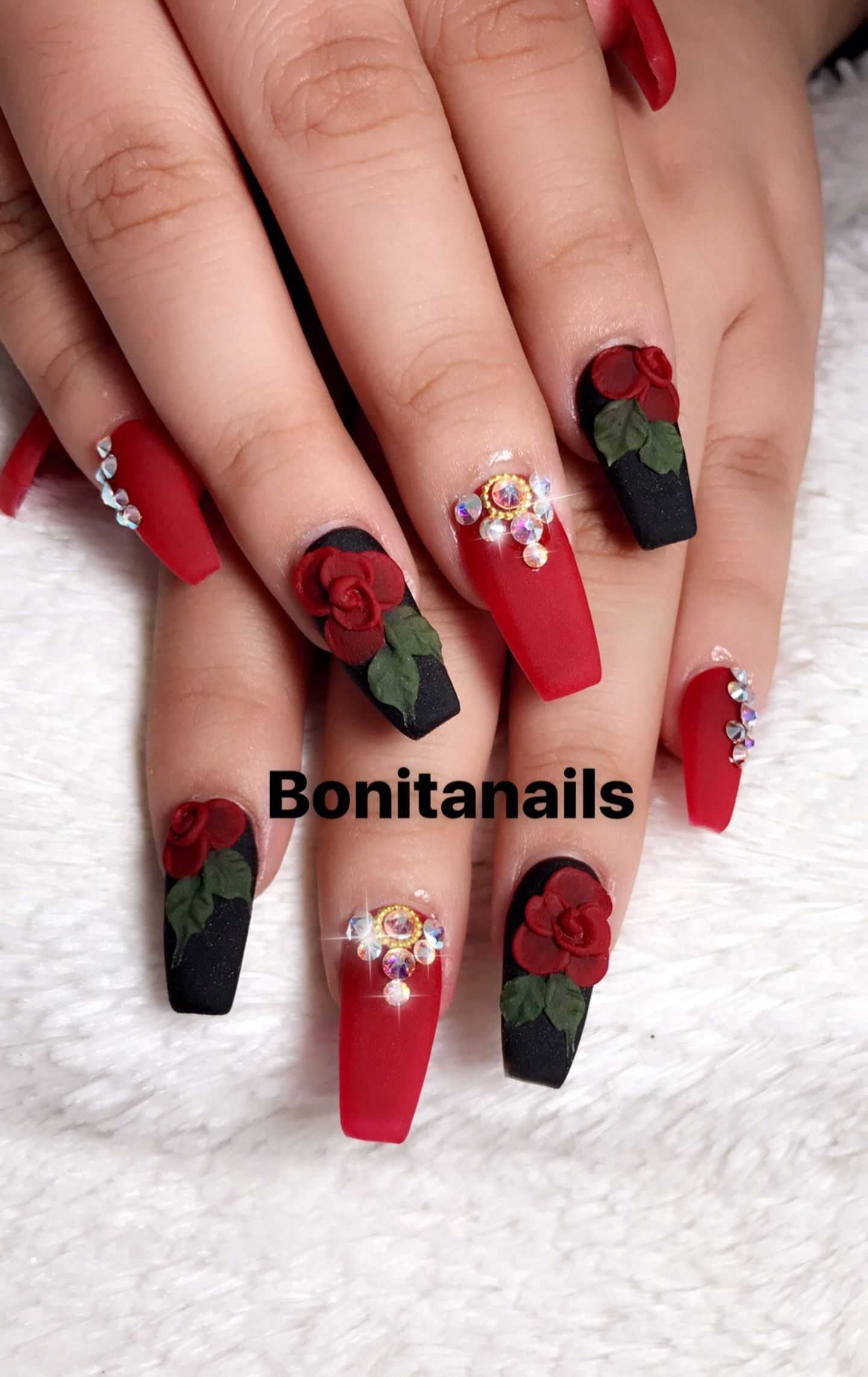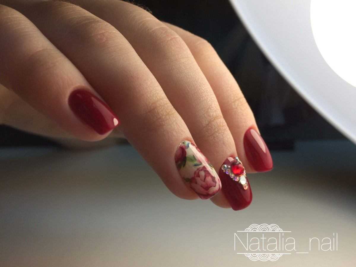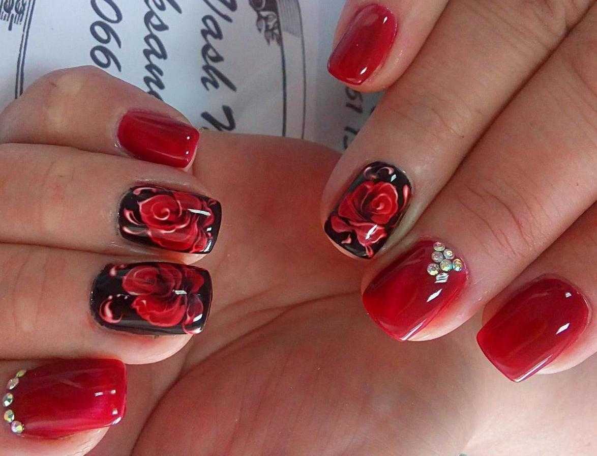 Красный маникюр с розами