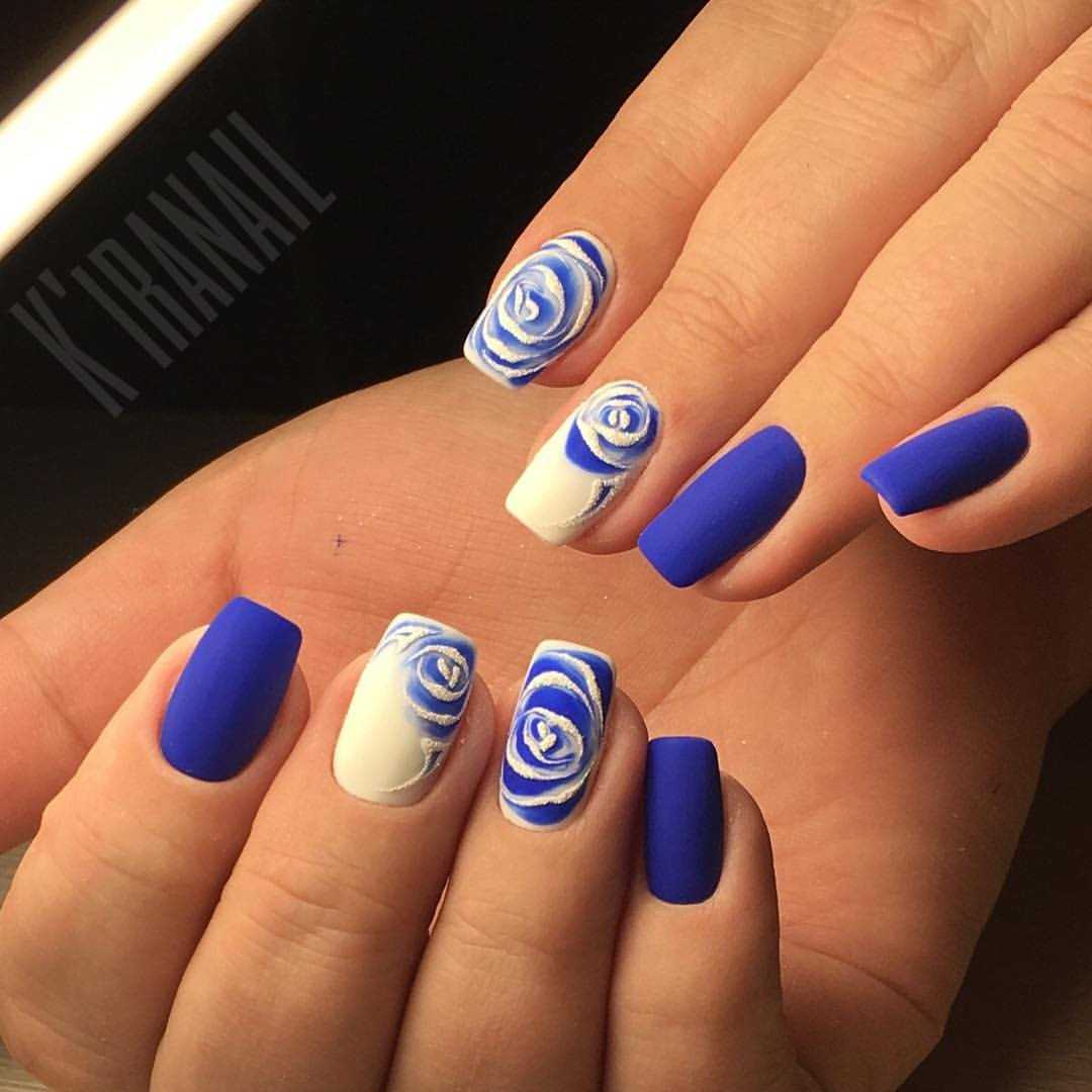 Что касается стиля исполнения, то тут все будет зависеть от личных предпочтений. Можно выбрать минимализм в исполнении и сделать маникюр в стиле «гжель» или сделать роскошный маникюр в стиле китайской росписи, нарисовать простые цветочки и украсить их блестками или же создать объемные цветы и расписать их акриловыми красками.