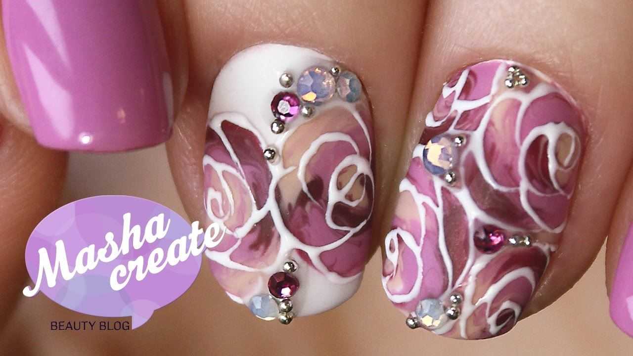 Как сделать маникюр с розами по-мокрому:
