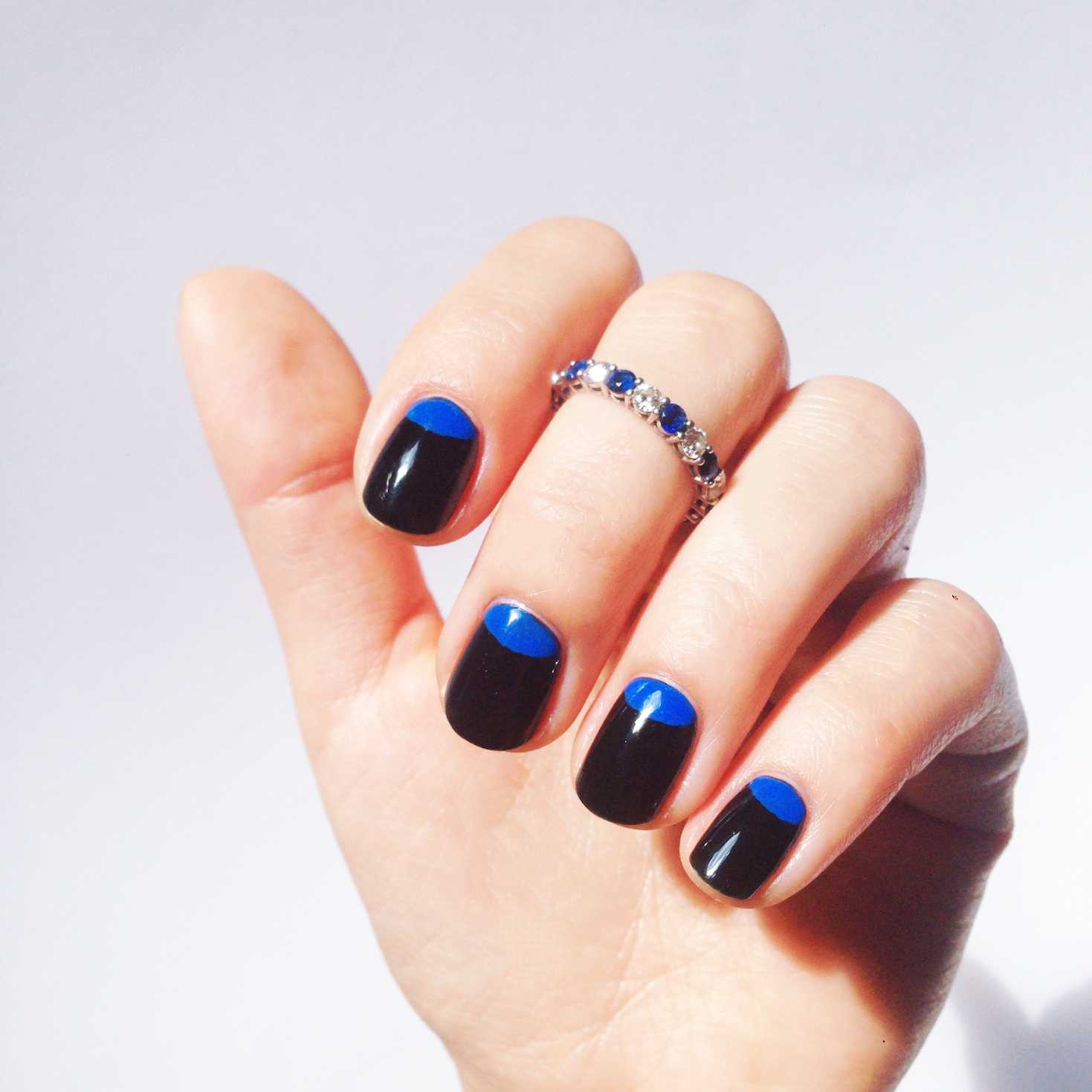 Чтобы он был виден как можно четче, перед нанесением синего лака можно покрыть ноготки контрастным черным или белым цветом
