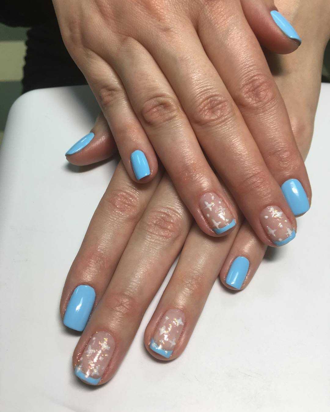 Подобное решение обусловлено невероятной женственностью и эстетикой маникюра. Также можно комбинировать уже имеющийся синий дизайн с блёстками, экспериментировать с глянцевым и матовым гель-лаком, попробовать новые сочетания в маникюре.