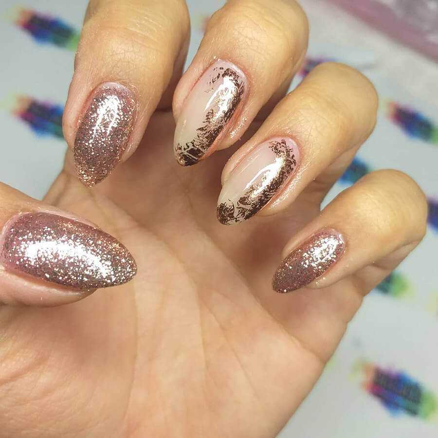 Вариантов дизайна золотистого маникюра, который под силу сделать самостоятельно много. Например, декор с фольгой.