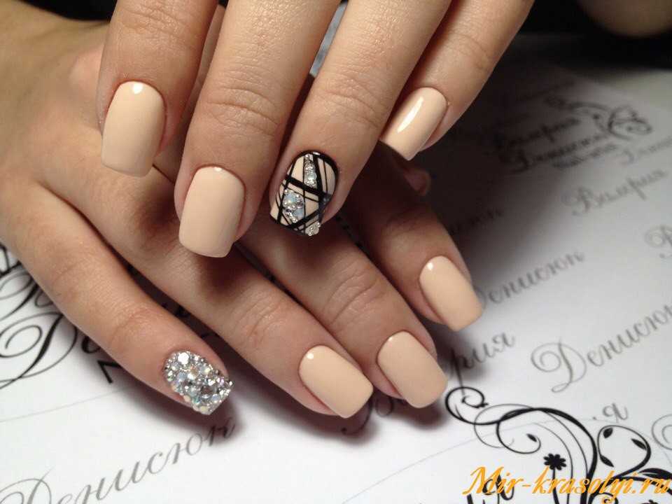 Беж считается универсальным и практичным оттенком, так как отлично смотрится на ногтях любой длины. Если хочется разбавить однотонное покрытие, то можно использовать различные модные техники.