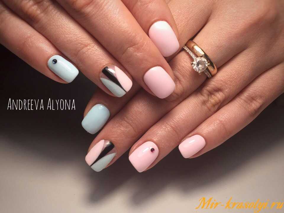Маникюр в пастельных тонах с геометрическим рисунком фото