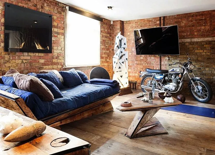 Холостяцкая гостиная с элементами гранжаИсточник dekormyhome.ru