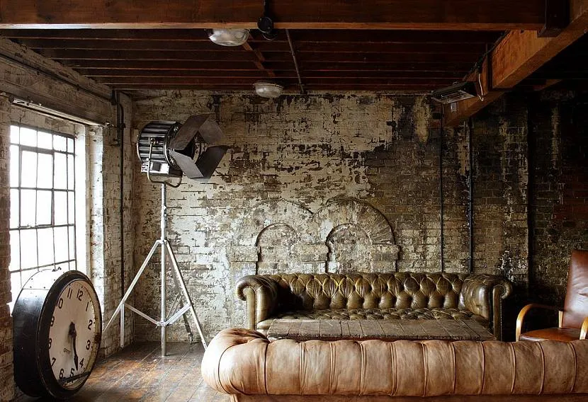 Также приветствуется грубая штукатурка. А с особым шиком смотрятся стены, где кирпичная кладка местами выглядывает из-за штукатурки. Или, наоборот, последняя присутствует только сверху и по бокам, а на центральном плане выделяется необработанный кирпич.