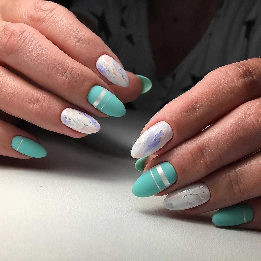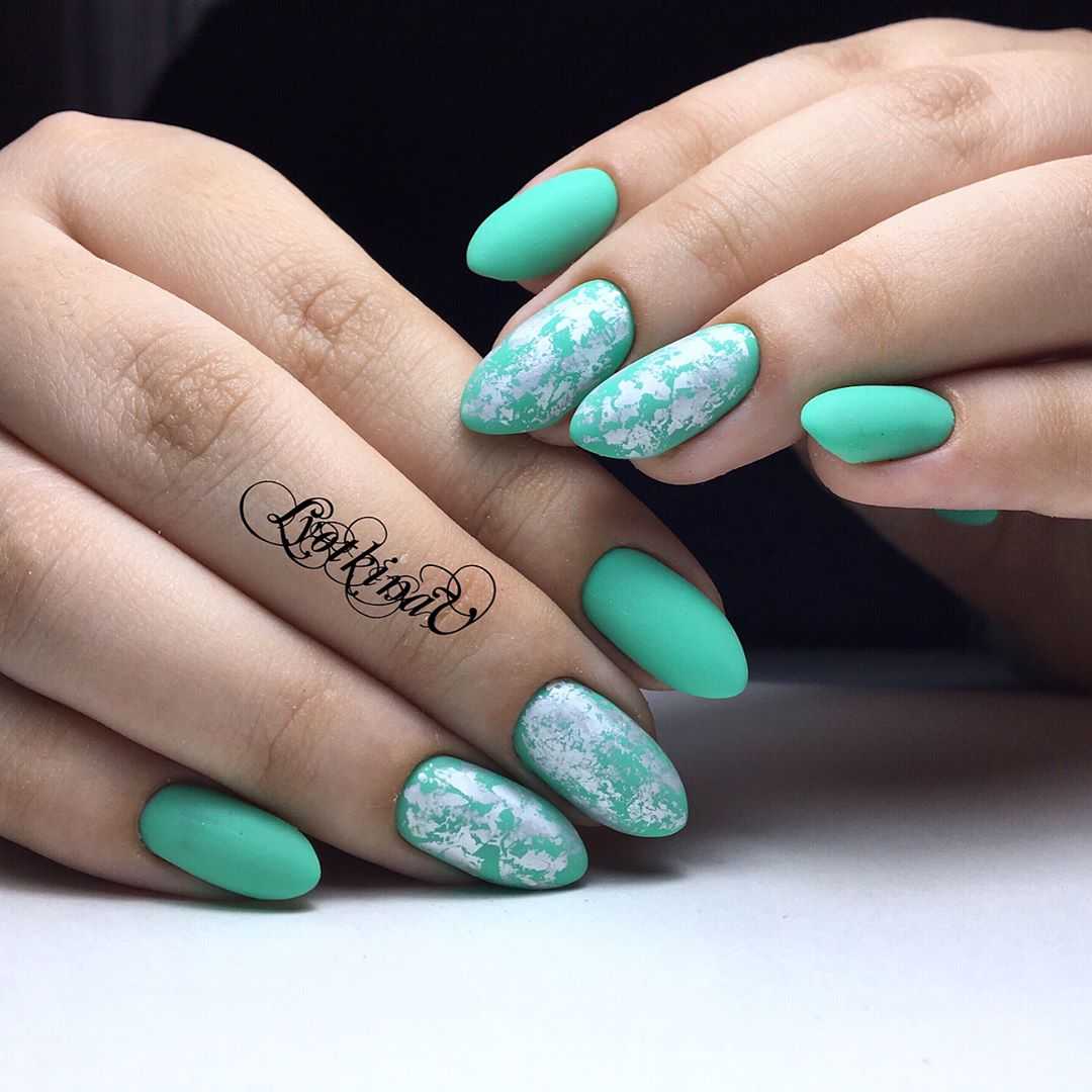 Также прекрасным решением станет матовый бело-мятный маникюр.